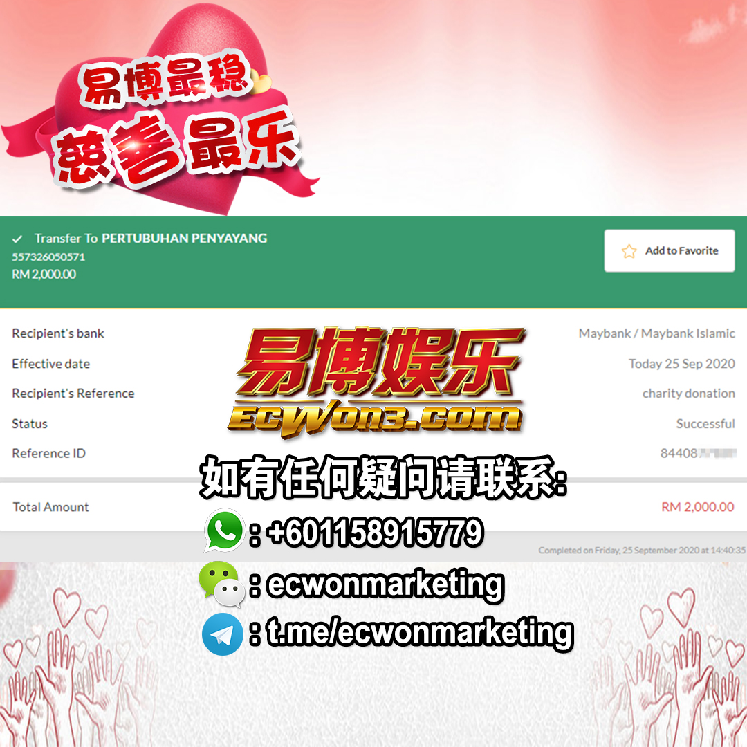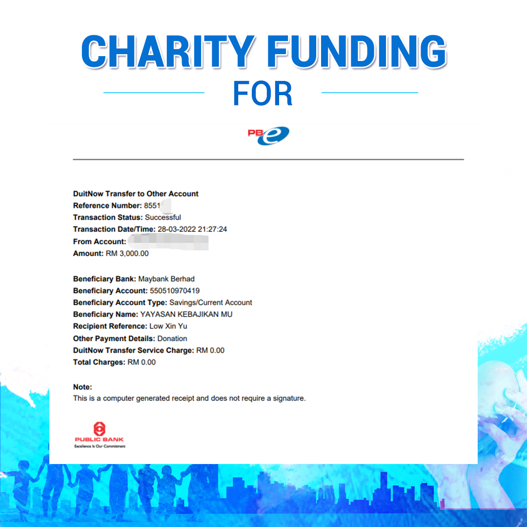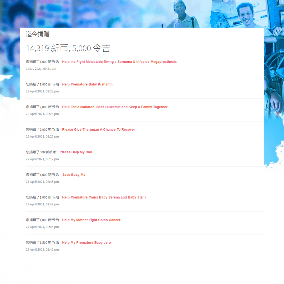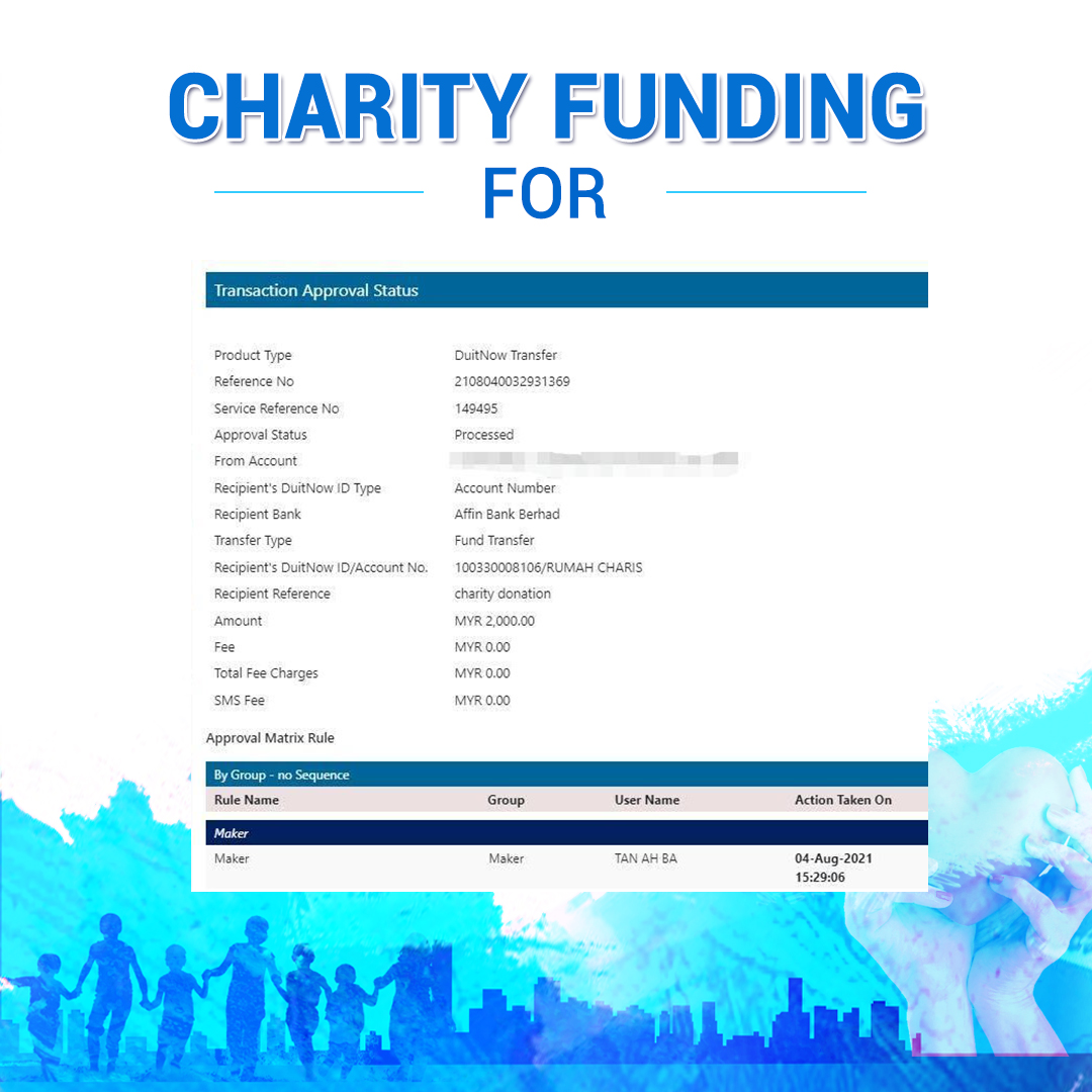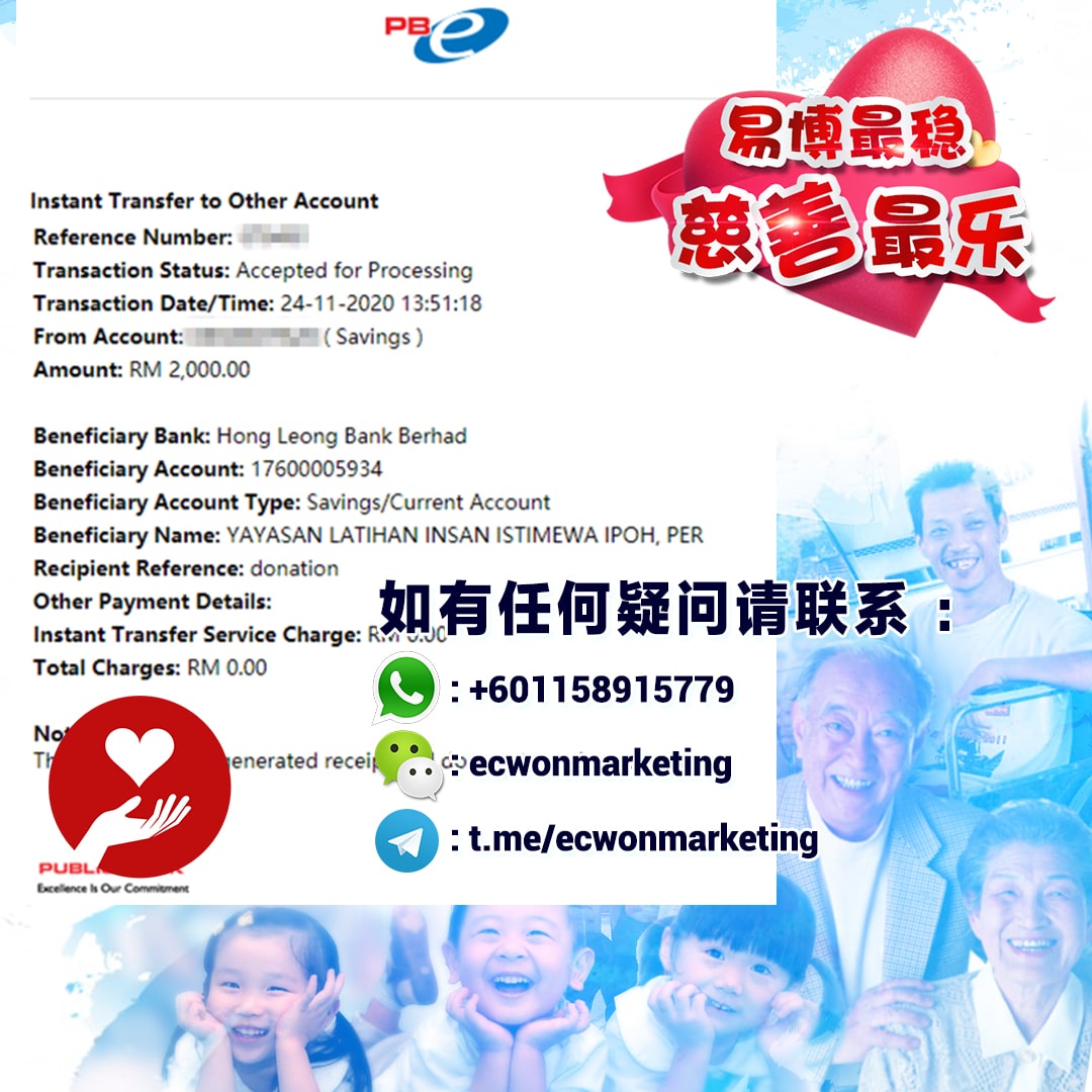 ×DATE UNITS MATTERS(Event/Case) AMOUNT RECEIPT 27/09/2025 One Hope Charity & Welfare September 2025 Donation RM 2,000 more 27/09/2025 One Hope Charity & Welfare September 2025 Donation RM 2,000 more 27/09/2025 UNICEF For Every Child September 2025 Donation RM 2,000 more 27/09/2025 Rayuan Tajaan Anak Yatim Gaza di bawah Projek Yatim KHOM September 2025 Donation RM 2,000 more 27/09/2025 Rayuan Kecemasan Susu Bayi Gaza September 2025 Donation RM 2,000 more 23/01/2024 Auntie Fong Lian (Give Malaysia) January 2024 Donation RM 2,000 more 23/01/2024 Baby Min Thant Chemotherapy Treatments (Give Malaysia) January 2024 Donation RM 2,000 more 23/01/2024 Give Acacia Fighting Chance (Give Malaysia) January 2024 Donation RM 2,000 more 23/01/2024 Haura Cancer Treatment (Give Malaysia) January 2024 Donation RM 2,000 more 23/01/2024 Raysha kidney Treatments (Give Malaysia) January 2024 Donation RM 2,000 more 29/08/2023 Nor Shahidah Heart Surgery August 2023 Donation RM 949.20 more 27/04/2023 Little Girl's Cancer Treatment April 2023 Donation RM 3,343 more 21/02/2023 GIVE Malaysia February 2023 Donation RM 5,000 more 15/12/2022 One Hope Charity & Welfa December 2022 Donation RM 10,000 more 12/07/2022 Lau Mei Jun July 2022 Donation RM 10,000 more 16/04/2022 Pusat Jagaan Kasih Sayang Prasanna April 2022 Donation RM 3,000 more 06/04/2022 Prakash Well Care Centre April 2022 Donation RM 10,000 more 28/03/2022 Yayasan Kebajikan Muslim - Low Xin Yu March 2022 Donation RM 3,000 more 14/02/2022 Puta Baramee Amulet Centre February 2022 Donation RM 2,000 more 31/12/2021 Pertubuhan Kebajikan Mu Zi Kuala Lumpur December Flood Relief RM 50,000 more 27/12/2021 7979 Volunteer Group December Flood Relief RM 6,383.71 more 26/12/2021 Prakash Well Care Centre December Donation RM 2,023.06 more 25/12/2021 Pertubuhan Kebajikan WSC December Flood Relief RM 33,000 more 08/12/2021 Details cannot be made public due to sensitive issues 2021 Qinghan Scholarship RM 10,000 more 31/10/2021 Kiew Lee Yun October Donation RM 2,000 more 14/10/2021 Wong Koy Lean October Donation RM 10,000 more 09/08/2021 Pertubuhan Kebajikan Shi Fang Johor Bahru Johor Urgent Donation for HFNC breathing tube RM 10,000 more 04/08/2021 Rumah Charis ECWON 6TH Anniversary Donation RM 2,000 more 04/08/2021 Be Home For Special Care ECWON 6TH Anniversary Donation RM 2,000 more 04/08/2021 Pusat Jagaan Sri Mesra-Mesra Home Ampang ECWON 6TH Anniversary Donation RM 2,000 more 04/08/2021 En Yuan Old Folk Home ECWON 6TH Anniversary Donation RM 2,000 more 04/08/2021 Association Yee Ran Jing Sheh Handicapped Children's Home ECWON 6TH Anniversary Donation RM 2,000 more 04/08/2021 Penang Handicapped Welfare Association ECWON 6TH Anniversary Donation RM 2,000 more 04/08/2021 Persatuan Rumah Caring Kajang Selangor ECWON 6TH Anniversary Donation RM 2,000 more 04/08/2021 Pertubuhan Kebajikan Orang Tua Cacat Dan Kurang Upaya Taman Connaught ECWON 6TH Anniversary Donation RM 2,000 more 04/08/2021 Pertubuhan Kebajikan Orang Tua Wen Xin ECWON 6TH Anniversary Donation RM 2,000 more 04/08/2021 Pusat Penjagaan Warga Emas Chan ECWON 6TH Anniversary Donation RM 2,000 more 04/08/2021 St. Nicholas' Home ECWON 6TH Anniversary Donation RM 2,000 more 04/08/2021 Pertubuhan Amal Uncle Kentang Malaysia ECWON 6TH Anniversary Donation RM 2,000 more 20/07/2021 White Flag Campaign ECWON 6TH Anniversary Donation RM 6,210.90 more 19/07/2021 Persatuan Kebajikan Amal Da Ai Malaysia Jul'21 Donation RM 1,000 more 01/06/2021 Klang Valley Elderly and Disability Center Klang Valley Elderly and Disability Donation RM 10,000 more 09/02/2021 Pertubuhan Amal Uncle Kentang Malaysia February Donation RM 10,000 more 09/02/2021 Persatuan Kebajikan Prihatin Kuan Yin February Donation RM 3,000 more 09/02/2021 Pkbb Shuang Fu JB February Donation RM 3,000 more 09/02/2021 Pertubuhan Kebajikan Amal Charis Mantin February Donation RM 3,000 more 09/02/2021 Persatuan Kebajikan Warga Emas Ci Shan February Donation RM 3,000 more 09/02/2021 Pertubuhan Pengurusan Rumah Anak-anak Yatim Dan Miskin "Anning" February Donation RM 3,000 more 09/02/2021 Kuching Life Care Society February Donation RM 2,000 more 06/02/2021 NGOhub February Donation RM 2,000 more 06/02/2021 Tenaganita Society February Donation RM 2,000 more 06/02/2021 Yayasan Setia Negara February Donation RM 2,000 more 06/02/2021 Hopis Malaysia February Donation RM 2,000 more 06/02/2021 Pusat Perubatan Universiti Malaya February Donation RM 2,000 more 06/02/2021 Respons Malaysia February Donation RM 2,000 more 06/02/2021 The Lost Food Project February Donation RM 2,000 more 06/02/2021 Unicef February Donation RM 2,000 more 06/02/2021 Protect and Save The Children February Donation RM 3,000 more 06/02/2021 MERCY Malaysia February Donation RM 3,000 more 05/02/2021 Persatuan Kebajikan Ler See February Donation RM 2,000 more 05/02/2021 Persatuan Kebajikan Kanak-kanak OKU Bayan Lebas Pulau Pinang February Donation RM 2,000 more 05/02/2021 Persatuan Insan Istimewa Cheras Selangor February Donation RM 2,000 more 05/02/2021 Persatuan Kebajikan Kanak-kanak Terencat Akal Malaysia February Donation RM 2,000 more 05/02/2021 Pertubuhan Kebajikan Shi Fang Johor February Donation RM 2,000 more 05/02/2021 Pusat Jagaan Kasih Sayang Prasanna February Donation RM 2,000 more 05/02/2021 Pusat Jagaan Kasih Sayang Angel February Donation RM 2,000 more 05/02/2021 Rumah Orang-orang Tua Seri Setia February Donation RM 2,000 more 05/02/2021 Pusat Kebajikan Care Haven Bhd February Donation RM 2,000 more 05/02/2021 Pertubuhan Kebajikan Orang Tua Yi Xing February Donation RM 3,000 more 05/02/2021 Pertubuhan Kebajikan Orang Tua Wen Xin February Donation RM 3,000 more 05/02/2021 Pertubuhan Kebajikan Orang Tua Cacat Dan Kurang Upaya Taman Connaught February Donation RM 3,000 more 05/02/2021 Pusat Penjagaan Warga Emas Chan February Donation RM 3,000 more 05/02/2021 Shine Home February Donation RM 3,000 more 05/02/2021 Pertubuhan Kebajikan Insan Istimewa Kuala Lumpur February Donation RM 3,000 more 05/02/