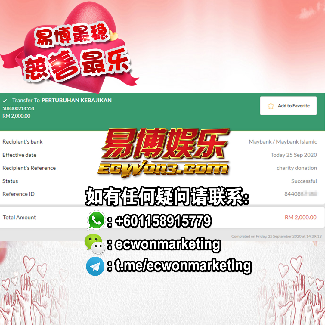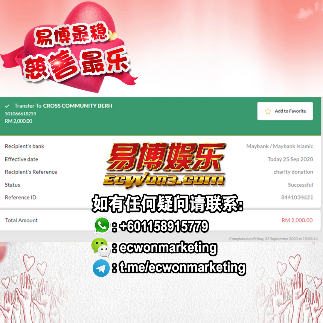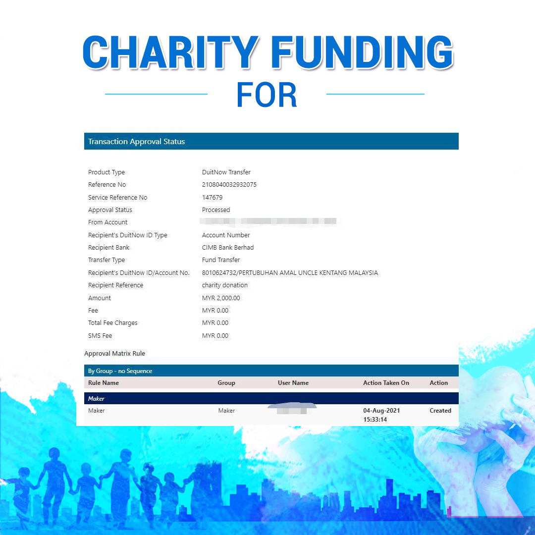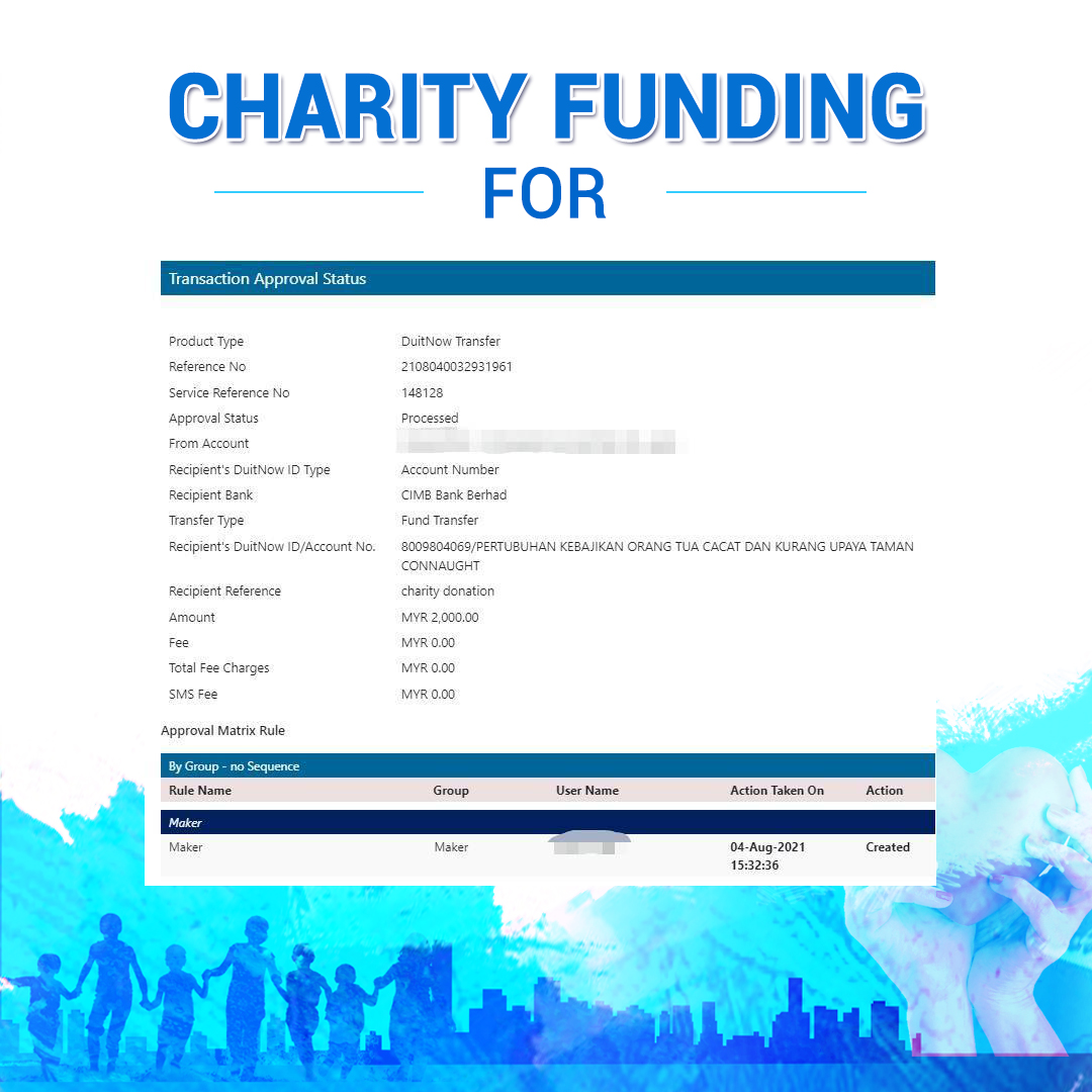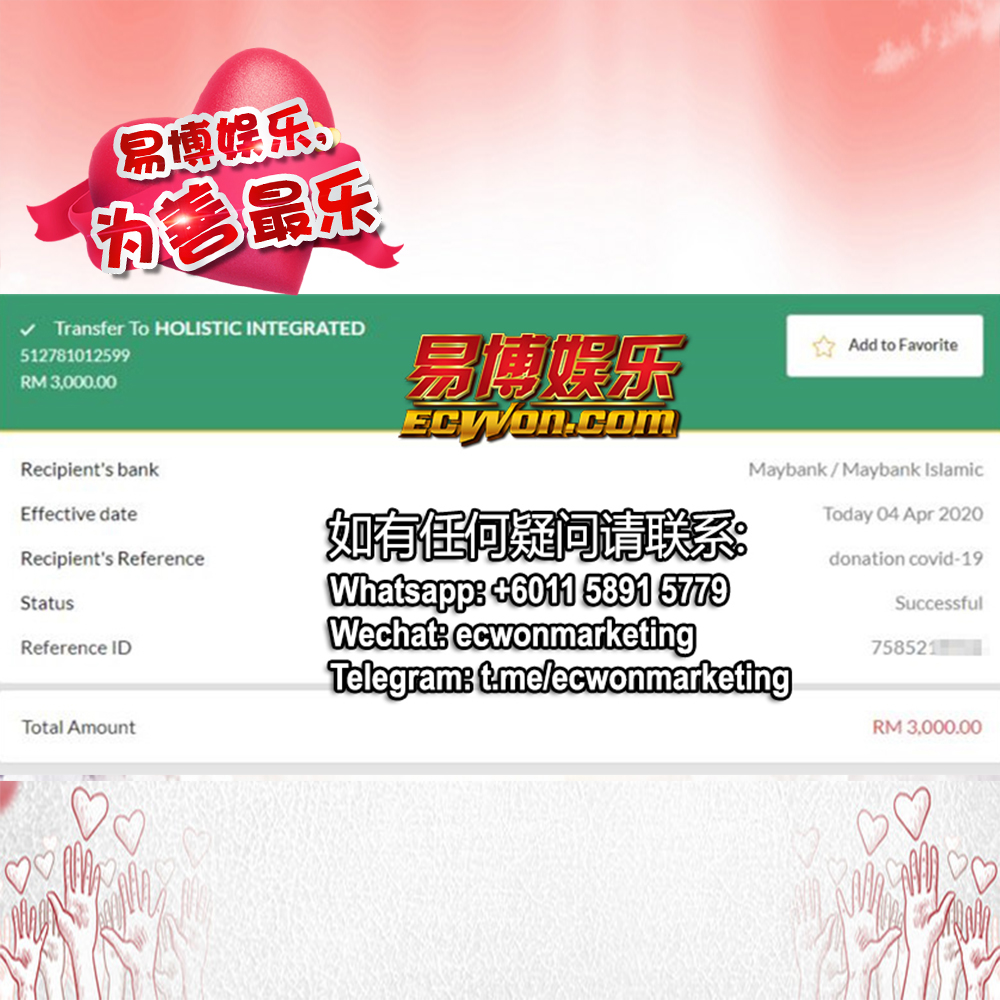 ×DATE UNITS MATTERS(Event/Case) AMOUNT RECEIPT 27/09/2025 One Hope Charity & Welfare September 2025 Donation RM 2,000 more 27/09/2025 One Hope Charity & Welfare September 2025 Donation RM 2,000 more 27/09/2025 UNICEF For Every Child September 2025 Donation RM 2,000 more 27/09/2025 Rayuan Tajaan Anak Yatim Gaza di bawah Projek Yatim KHOM September 2025 Donation RM 2,000 more 27/09/2025 Rayuan Kecemasan Susu Bayi Gaza September 2025 Donation RM 2,000 more 23/01/2024 Auntie Fong Lian (Give Malaysia) January 2024 Donation RM 2,000 more 23/01/2024 Baby Min Thant Chemotherapy Treatments (Give Malaysia) January 2024 Donation RM 2,000 more 23/01/2024 Give Acacia Fighting Chance (Give Malaysia) January 2024 Donation RM 2,000 more 23/01/2024 Haura Cancer Treatment (Give Malaysia) January 2024 Donation RM 2,000 more 23/01/2024 Raysha kidney Treatments (Give Malaysia) January 2024 Donation RM 2,000 more 29/08/2023 Nor Shahidah Heart Surgery August 2023 Donation RM 949.20 more 27/04/2023 Little Girl's Cancer Treatment April 2023 Donation RM 3,343 more 21/02/2023 GIVE Malaysia February 2023 Donation RM 5,000 more 15/12/2022 One Hope Charity & Welfa December 2022 Donation RM 10,000 more 12/07/2022 Lau Mei Jun July 2022 Donation RM 10,000 more 16/04/2022 Pusat Jagaan Kasih Sayang Prasanna April 2022 Donation RM 3,000 more 06/04/2022 Prakash Well Care Centre April 2022 Donation RM 10,000 more 28/03/2022 Yayasan Kebajikan Muslim - Low Xin Yu March 2022 Donation RM 3,000 more 14/02/2022 Puta Baramee Amulet Centre February 2022 Donation RM 2,000 more 31/12/2021 Pertubuhan Kebajikan Mu Zi Kuala Lumpur December Flood Relief RM 50,000 more 27/12/2021 7979 Volunteer Group December Flood Relief RM 6,383.71 more 26/12/2021 Prakash Well Care Centre December Donation RM 2,023.06 more 25/12/2021 Pertubuhan Kebajikan WSC December Flood Relief RM 33,000 more 08/12/2021 Details cannot be made public due to sensitive issues 2021 Qinghan Scholarship RM 10,000 more 31/10/2021 Kiew Lee Yun October Donation RM 2,000 more 14/10/2021 Wong Koy Lean October Donation RM 10,000 more 09/08/2021 Pertubuhan Kebajikan Shi Fang Johor Bahru Johor Urgent Donation for HFNC breathing tube RM 10,000 more 04/08/2021 Rumah Charis ECWON 6TH Anniversary Donation RM 2,000 more 04/08/2021 Be Home For Special Care ECWON 6TH Anniversary Donation RM 2,000 more 04/08/2021 Pusat Jagaan Sri Mesra-Mesra Home Ampang ECWON 6TH Anniversary Donation RM 2,000 more 04/08/2021 En Yuan Old Folk Home ECWON 6TH Anniversary Donation RM 2,000 more 04/08/2021 Association Yee Ran Jing Sheh Handicapped Children's Home ECWON 6TH Anniversary Donation RM 2,000 more 04/08/2021 Penang Handicapped Welfare Association ECWON 6TH Anniversary Donation RM 2,000 more 04/08/2021 Persatuan Rumah Caring Kajang Selangor ECWON 6TH Anniversary Donation RM 2,000 more 04/08/2021 Pertubuhan Kebajikan Orang Tua Cacat Dan Kurang Upaya Taman Connaught ECWON 6TH Anniversary Donation RM 2,000 more 04/08/2021 Pertubuhan Kebajikan Orang Tua Wen Xin ECWON 6TH Anniversary Donation RM 2,000 more 04/08/2021 Pusat Penjagaan Warga Emas Chan ECWON 6TH Anniversary Donation RM 2,000 more 04/08/2021 St. Nicholas' Home ECWON 6TH Anniversary Donation RM 2,000 more 04/08/2021 Pertubuhan Amal Uncle Kentang Malaysia ECWON 6TH Anniversary Donation RM 2,000 more 20/07/2021 White Flag Campaign ECWON 6TH Anniversary Donation RM 6,210.90 more 19/07/2021 Persatuan Kebajikan Amal Da Ai Malaysia Jul'21 Donation RM 1,000 more 01/06/2021 Klang Valley Elderly and Disability Center Klang Valley Elderly and Disability Donation RM 10,000 more 09/02/2021 Pertubuhan Amal Uncle Kentang Malaysia February Donation RM 10,000 more 09/02/2021 Persatuan Kebajikan Prihatin Kuan Yin February Donation RM 3,000 more 09/02/2021 Pkbb Shuang Fu JB February Donation RM 3,000 more 09/02/2021 Pertubuhan Kebajikan Amal Charis Mantin February Donation RM 3,000 more 09/02/2021 Persatuan Kebajikan Warga Emas Ci Shan February Donation RM 3,000 more 09/02/2021 Pertubuhan Pengurusan Rumah Anak-anak Yatim Dan Miskin "Anning" February Donation RM 3,000 more 09/02/2021 Kuching Life Care Society February Donation RM 2,000 more 06/02/2021 NGOhub February Donation RM 2,000 more 06/02/2021 Tenaganita Society February Donation RM 2,000 more 06/02/2021 Yayasan Setia Negara February Donation RM 2,000 more 06/02/2021 Hopis Malaysia February Donation RM 2,000 more 06/02/2021 Pusat Perubatan Universiti Malaya February Donation RM 2,000 more 06/02/2021 Respons Malaysia February Donation RM 2,000 more 06/02/2021 The Lost Food Project February Donation RM 2,000 more 06/02/2021 Unicef February Donation RM 2,000 more 06/02/2021 Protect and Save The Children February Donation RM 3,000 more 06/02/2021 MERCY Malaysia February Donation RM 3,000 more 05/02/2021 Persatuan Kebajikan Ler See February Donation RM 2,000 more 05/02/2021 Persatuan Kebajikan Kanak-kanak OKU Bayan Lebas Pulau Pinang February Donation RM 2,000 more 05/02/2021 Persatuan Insan Istimewa Cheras Selangor February Donation RM 2,000 more 05/02/2021 Persatuan Kebajikan Kanak-kanak Terencat Akal Malaysia February Donation RM 2,000 more 05/02/2021 Pertubuhan Kebajikan Shi Fang Johor February Donation RM 2,000 more 05/02/2021 Pusat Jagaan Kasih Sayang Prasanna February Donation RM 2,000 more 05/02/2021 Pusat Jagaan Kasih Sayang Angel February Donation RM 2,000 more 05/02/2021 Rumah Orang-orang Tua Seri Setia February Donation RM 2,000 more 05/02/2021 Pusat Kebajikan Care Haven Bhd February Donation RM 2,000 more 05/02/2021 Pertubuhan Kebajikan Orang Tua Yi Xing February Donation RM 3,000 more 05/02/2021 Pertubuhan Kebajikan Orang Tua Wen Xin February Donation RM 3,000 more 05/02/2021 Pertubuhan Kebajikan Orang Tua Cacat Dan Kurang Upaya Taman Connaught February Donation RM 3,000 more 05/02/2021 Pusat Penjagaan Warga Emas Chan February Donation RM 3,000 more 05/02/2021 Shine Home February Donation RM 3,000 more 05/02/2021 Pertubuhan Kebajikan Insan Istimewa Kuala Lumpur February Donation RM 3,000 more 05/02/