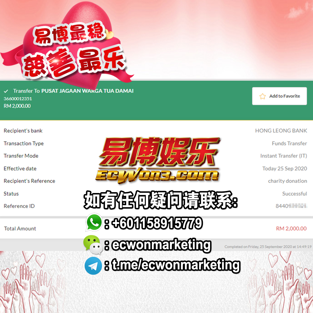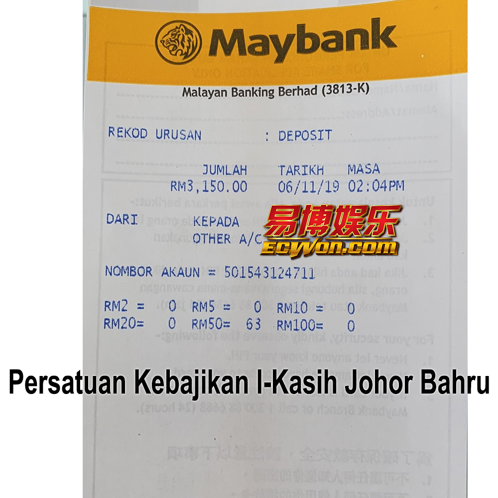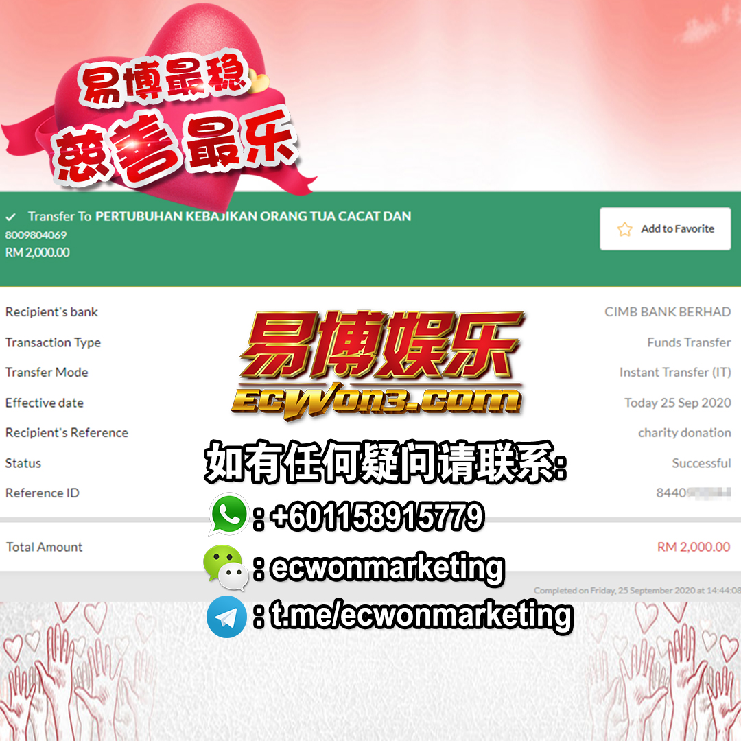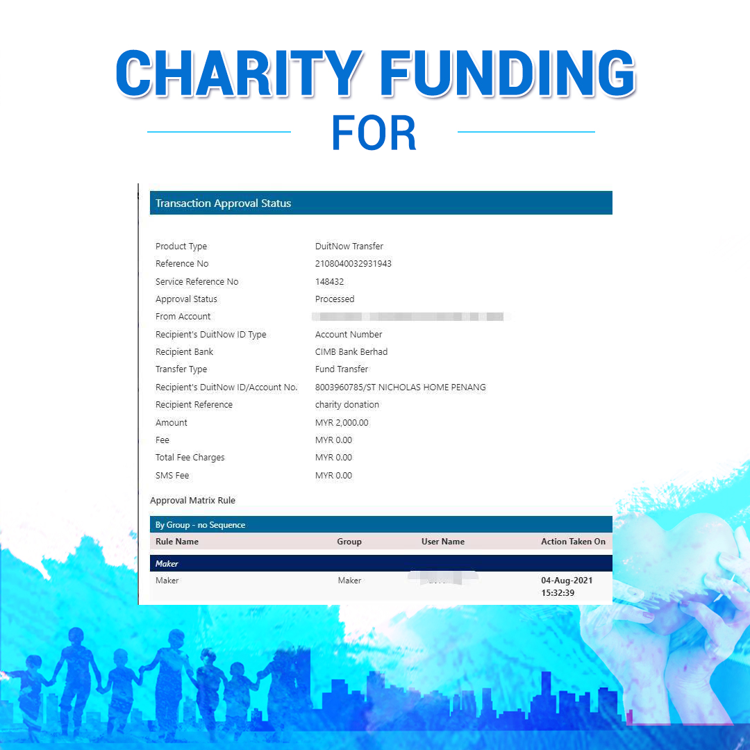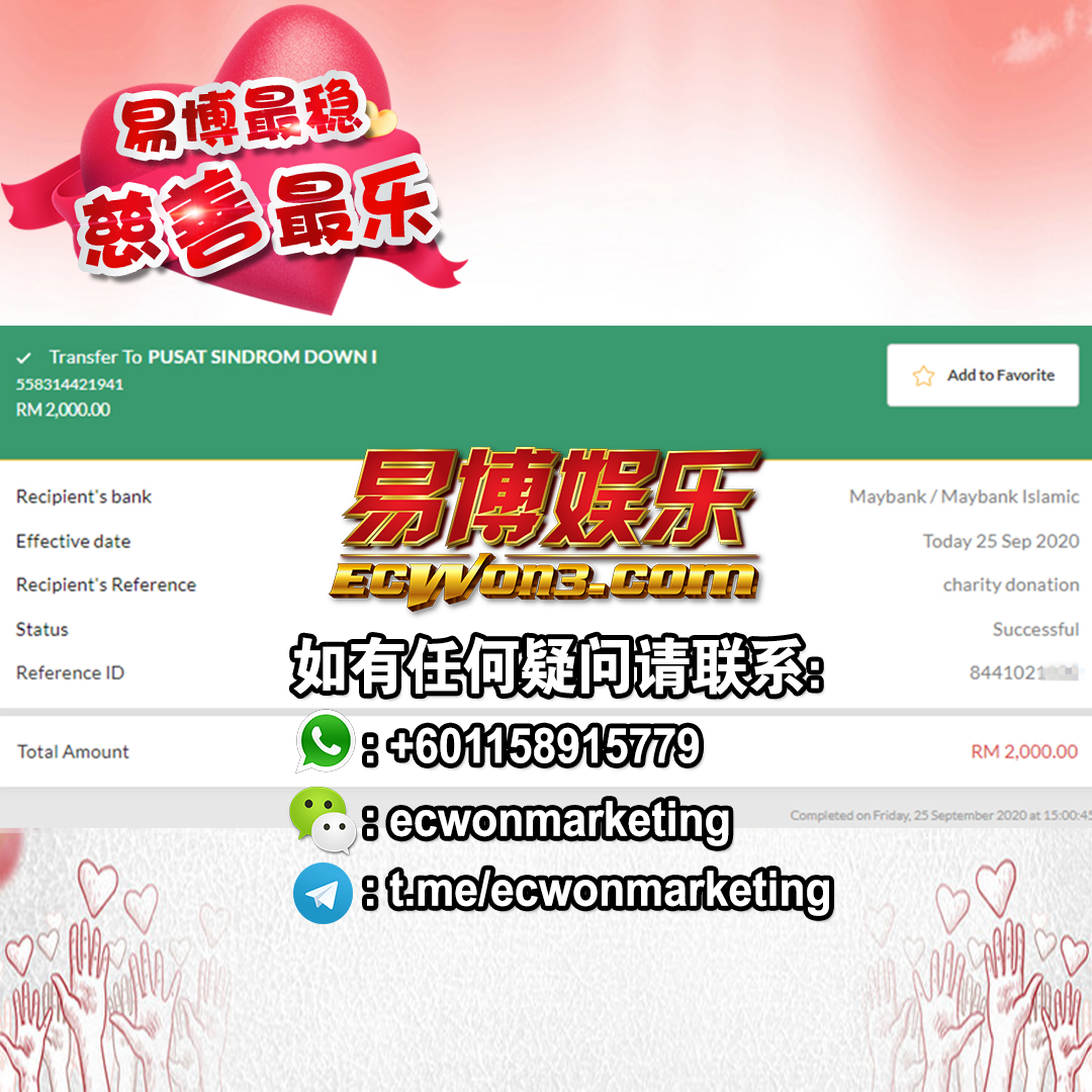 ×DATE UNITS MATTERS(Event/Case) AMOUNT RECEIPT 27/09/2025 One Hope Charity & Welfare September 2025 Donation RM 2,000 more 27/09/2025 One Hope Charity & Welfare September 2025 Donation RM 2,000 more 27/09/2025 UNICEF For Every Child September 2025 Donation RM 2,000 more 27/09/2025 Rayuan Tajaan Anak Yatim Gaza di bawah Projek Yatim KHOM September 2025 Donation RM 2,000 more 27/09/2025 Rayuan Kecemasan Susu Bayi Gaza September 2025 Donation RM 2,000 more 23/01/2024 Auntie Fong Lian (Give Malaysia) January 2024 Donation RM 2,000 more 23/01/2024 Baby Min Thant Chemotherapy Treatments (Give Malaysia) January 2024 Donation RM 2,000 more 23/01/2024 Give Acacia Fighting Chance (Give Malaysia) January 2024 Donation RM 2,000 more 23/01/2024 Haura Cancer Treatment (Give Malaysia) January 2024 Donation RM 2,000 more 23/01/2024 Raysha kidney Treatments (Give Malaysia) January 2024 Donation RM 2,000 more 29/08/2023 Nor Shahidah Heart Surgery August 2023 Donation RM 949.20 more 27/04/2023 Little Girl's Cancer Treatment April 2023 Donation RM 3,343 more 21/02/2023 GIVE Malaysia February 2023 Donation RM 5,000 more 15/12/2022 One Hope Charity & Welfa December 2022 Donation RM 10,000 more 12/07/2022 Lau Mei Jun July 2022 Donation RM 10,000 more 16/04/2022 Pusat Jagaan Kasih Sayang Prasanna April 2022 Donation RM 3,000 more 06/04/2022 Prakash Well Care Centre April 2022 Donation RM 10,000 more 28/03/2022 Yayasan Kebajikan Muslim - Low Xin Yu March 2022 Donation RM 3,000 more 14/02/2022 Puta Baramee Amulet Centre February 2022 Donation RM 2,000 more 31/12/2021 Pertubuhan Kebajikan Mu Zi Kuala Lumpur December Flood Relief RM 50,000 more 27/12/2021 7979 Volunteer Group December Flood Relief RM 6,383.71 more 26/12/2021 Prakash Well Care Centre December Donation RM 2,023.06 more 25/12/2021 Pertubuhan Kebajikan WSC December Flood Relief RM 33,000 more 08/12/2021 Details cannot be made public due to sensitive issues 2021 Qinghan Scholarship RM 10,000 more 31/10/2021 Kiew Lee Yun October Donation RM 2,000 more 14/10/2021 Wong Koy Lean October Donation RM 10,000 more 09/08/2021 Pertubuhan Kebajikan Shi Fang Johor Bahru Johor Urgent Donation for HFNC breathing tube RM 10,000 more 04/08/2021 Rumah Charis ECWON 6TH Anniversary Donation RM 2,000 more 04/08/2021 Be Home For Special Care ECWON 6TH Anniversary Donation RM 2,000 more 04/08/2021 Pusat Jagaan Sri Mesra-Mesra Home Ampang ECWON 6TH Anniversary Donation RM 2,000 more 04/08/2021 En Yuan Old Folk Home ECWON 6TH Anniversary Donation RM 2,000 more 04/08/2021 Association Yee Ran Jing Sheh Handicapped Children's Home ECWON 6TH Anniversary Donation RM 2,000 more 04/08/2021 Penang Handicapped Welfare Association ECWON 6TH Anniversary Donation RM 2,000 more 04/08/2021 Persatuan Rumah Caring Kajang Selangor ECWON 6TH Anniversary Donation RM 2,000 more 04/08/2021 Pertubuhan Kebajikan Orang Tua Cacat Dan Kurang Upaya Taman Connaught ECWON 6TH Anniversary Donation RM 2,000 more 04/08/2021 Pertubuhan Kebajikan Orang Tua Wen Xin ECWON 6TH Anniversary Donation RM 2,000 more 04/08/2021 Pusat Penjagaan Warga Emas Chan ECWON 6TH Anniversary Donation RM 2,000 more 04/08/2021 St. Nicholas' Home ECWON 6TH Anniversary Donation RM 2,000 more 04/08/2021 Pertubuhan Amal Uncle Kentang Malaysia ECWON 6TH Anniversary Donation RM 2,000 more 20/07/2021 White Flag Campaign ECWON 6TH Anniversary Donation RM 6,210.90 more 19/07/2021 Persatuan Kebajikan Amal Da Ai Malaysia Jul'21 Donation RM 1,000 more 01/06/2021 Klang Valley Elderly and Disability Center Klang Valley Elderly and Disability Donation RM 10,000 more 09/02/2021 Pertubuhan Amal Uncle Kentang Malaysia February Donation RM 10,000 more 09/02/2021 Persatuan Kebajikan Prihatin Kuan Yin February Donation RM 3,000 more 09/02/2021 Pkbb Shuang Fu JB February Donation RM 3,000 more 09/02/2021 Pertubuhan Kebajikan Amal Charis Mantin February Donation RM 3,000 more 09/02/2021 Persatuan Kebajikan Warga Emas Ci Shan February Donation RM 3,000 more 09/02/2021 Pertubuhan Pengurusan Rumah Anak-anak Yatim Dan Miskin "Anning" February Donation RM 3,000 more 09/02/2021 Kuching Life Care Society February Donation RM 2,000 more 06/02/2021 NGOhub February Donation RM 2,000 more 06/02/2021 Tenaganita Society February Donation RM 2,000 more 06/02/2021 Yayasan Setia Negara February Donation RM 2,000 more 06/02/2021 Hopis Malaysia February Donation RM 2,000 more 06/02/2021 Pusat Perubatan Universiti Malaya February Donation RM 2,000 more 06/02/2021 Respons Malaysia February Donation RM 2,000 more 06/02/2021 The Lost Food Project February Donation RM 2,000 more 06/02/2021 Unicef February Donation RM 2,000 more 06/02/2021 Protect and Save The Children February Donation RM 3,000 more 06/02/2021 MERCY Malaysia February Donation RM 3,000 more 05/02/2021 Persatuan Kebajikan Ler See February Donation RM 2,000 more 05/02/2021 Persatuan Kebajikan Kanak-kanak OKU Bayan Lebas Pulau Pinang February Donation RM 2,000 more 05/02/2021 Persatuan Insan Istimewa Cheras Selangor February Donation RM 2,000 more 05/02/2021 Persatuan Kebajikan Kanak-kanak Terencat Akal Malaysia February Donation RM 2,000 more 05/02/2021 Pertubuhan Kebajikan Shi Fang Johor February Donation RM 2,000 more 05/02/2021 Pusat Jagaan Kasih Sayang Prasanna February Donation RM 2,000 more 05/02/2021 Pusat Jagaan Kasih Sayang Angel February Donation RM 2,000 more 05/02/2021 Rumah Orang-orang Tua Seri Setia February Donation RM 2,000 more 05/02/2021 Pusat Kebajikan Care Haven Bhd February Donation RM 2,000 more 05/02/2021 Pertubuhan Kebajikan Orang Tua Yi Xing February Donation RM 3,000 more 05/02/2021 Pertubuhan Kebajikan Orang Tua Wen Xin February Donation RM 3,000 more 05/02/2021 Pertubuhan Kebajikan Orang Tua Cacat Dan Kurang Upaya Taman Connaught February Donation RM 3,000 more 05/02/2021 Pusat Penjagaan Warga Emas Chan February Donation RM 3,000 more 05/02/2021 Shine Home February Donation RM 3,000 more 05/02/2021 Pertubuhan Kebajikan Insan Istimewa Kuala Lumpur February Donation RM 3,000 more 05/02/