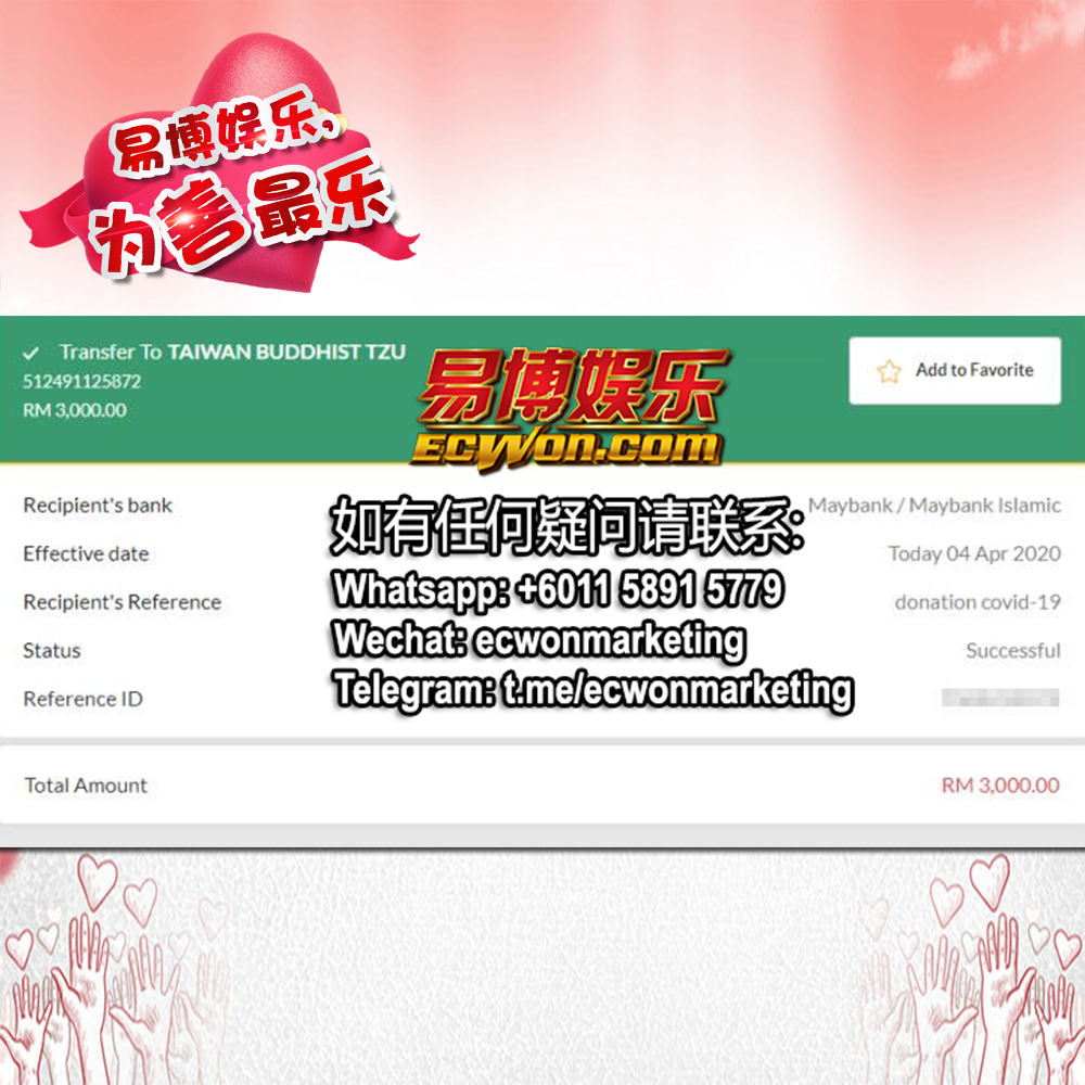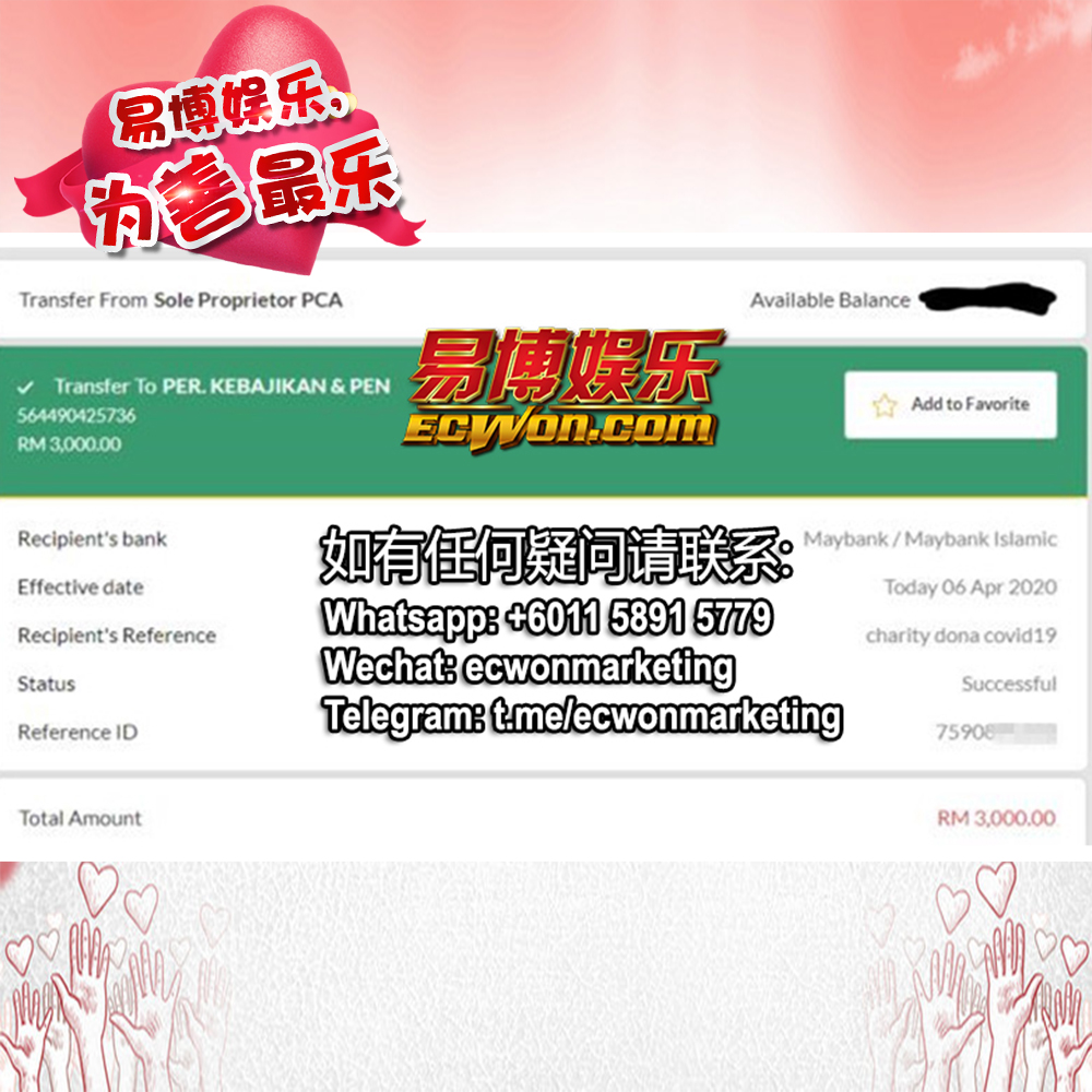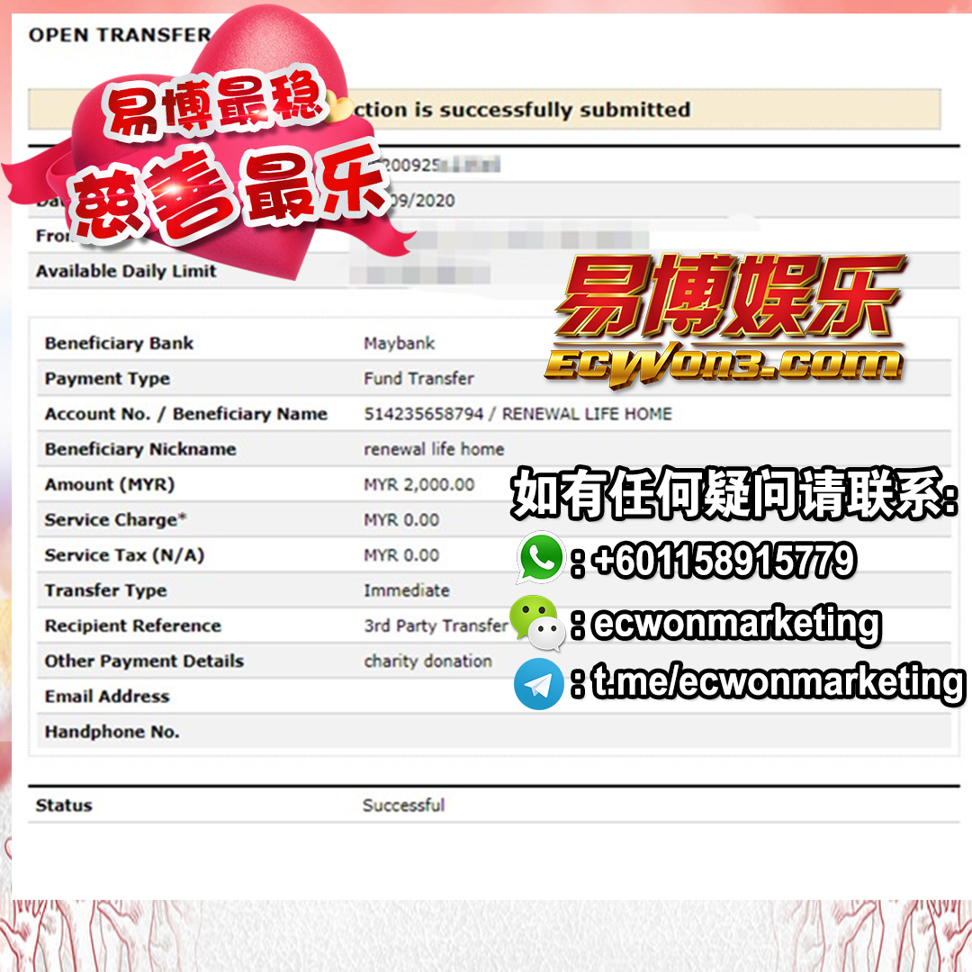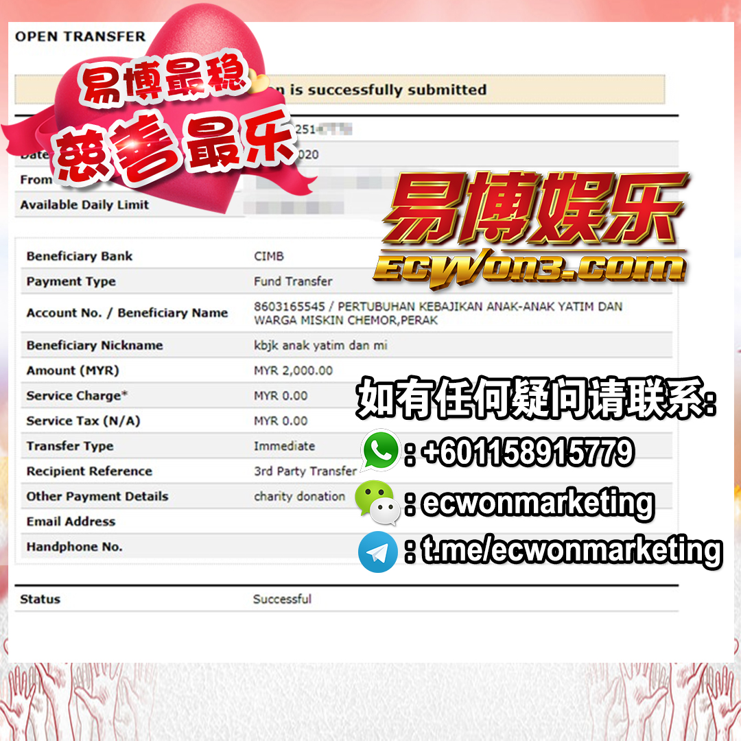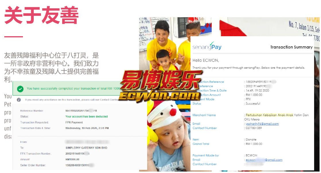 ×DATE UNITS MATTERS(Event/Case) AMOUNT RECEIPT 27/09/2025 One Hope Charity & Welfare September 2025 Donation RM 2,000 more 27/09/2025 One Hope Charity & Welfare September 2025 Donation RM 2,000 more 27/09/2025 UNICEF For Every Child September 2025 Donation RM 2,000 more 27/09/2025 Rayuan Tajaan Anak Yatim Gaza di bawah Projek Yatim KHOM September 2025 Donation RM 2,000 more 27/09/2025 Rayuan Kecemasan Susu Bayi Gaza September 2025 Donation RM 2,000 more 23/01/2024 Auntie Fong Lian (Give Malaysia) January 2024 Donation RM 2,000 more 23/01/2024 Baby Min Thant Chemotherapy Treatments (Give Malaysia) January 2024 Donation RM 2,000 more 23/01/2024 Give Acacia Fighting Chance (Give Malaysia) January 2024 Donation RM 2,000 more 23/01/2024 Haura Cancer Treatment (Give Malaysia) January 2024 Donation RM 2,000 more 23/01/2024 Raysha kidney Treatments (Give Malaysia) January 2024 Donation RM 2,000 more 29/08/2023 Nor Shahidah Heart Surgery August 2023 Donation RM 949.20 more 27/04/2023 Little Girl's Cancer Treatment April 2023 Donation RM 3,343 more 21/02/2023 GIVE Malaysia February 2023 Donation RM 5,000 more 15/12/2022 One Hope Charity & Welfa December 2022 Donation RM 10,000 more 12/07/2022 Lau Mei Jun July 2022 Donation RM 10,000 more 16/04/2022 Pusat Jagaan Kasih Sayang Prasanna April 2022 Donation RM 3,000 more 06/04/2022 Prakash Well Care Centre April 2022 Donation RM 10,000 more 28/03/2022 Yayasan Kebajikan Muslim - Low Xin Yu March 2022 Donation RM 3,000 more 14/02/2022 Puta Baramee Amulet Centre February 2022 Donation RM 2,000 more 31/12/2021 Pertubuhan Kebajikan Mu Zi Kuala Lumpur December Flood Relief RM 50,000 more 27/12/2021 7979 Volunteer Group December Flood Relief RM 6,383.71 more 26/12/2021 Prakash Well Care Centre December Donation RM 2,023.06 more 25/12/2021 Pertubuhan Kebajikan WSC December Flood Relief RM 33,000 more 08/12/2021 Details cannot be made public due to sensitive issues 2021 Qinghan Scholarship RM 10,000 more 31/10/2021 Kiew Lee Yun October Donation RM 2,000 more 14/10/2021 Wong Koy Lean October Donation RM 10,000 more 09/08/2021 Pertubuhan Kebajikan Shi Fang Johor Bahru Johor Urgent Donation for HFNC breathing tube RM 10,000 more 04/08/2021 Rumah Charis ECWON 6TH Anniversary Donation RM 2,000 more 04/08/2021 Be Home For Special Care ECWON 6TH Anniversary Donation RM 2,000 more 04/08/2021 Pusat Jagaan Sri Mesra-Mesra Home Ampang ECWON 6TH Anniversary Donation RM 2,000 more 04/08/2021 En Yuan Old Folk Home ECWON 6TH Anniversary Donation RM 2,000 more 04/08/2021 Association Yee Ran Jing Sheh Handicapped Children's Home ECWON 6TH Anniversary Donation RM 2,000 more 04/08/2021 Penang Handicapped Welfare Association ECWON 6TH Anniversary Donation RM 2,000 more 04/08/2021 Persatuan Rumah Caring Kajang Selangor ECWON 6TH Anniversary Donation RM 2,000 more 04/08/2021 Pertubuhan Kebajikan Orang Tua Cacat Dan Kurang Upaya Taman Connaught ECWON 6TH Anniversary Donation RM 2,000 more 04/08/2021 Pertubuhan Kebajikan Orang Tua Wen Xin ECWON 6TH Anniversary Donation RM 2,000 more 04/08/2021 Pusat Penjagaan Warga Emas Chan ECWON 6TH Anniversary Donation RM 2,000 more 04/08/2021 St. Nicholas' Home ECWON 6TH Anniversary Donation RM 2,000 more 04/08/2021 Pertubuhan Amal Uncle Kentang Malaysia ECWON 6TH Anniversary Donation RM 2,000 more 20/07/2021 White Flag Campaign ECWON 6TH Anniversary Donation RM 6,210.90 more 19/07/2021 Persatuan Kebajikan Amal Da Ai Malaysia Jul'21 Donation RM 1,000 more 01/06/2021 Klang Valley Elderly and Disability Center Klang Valley Elderly and Disability Donation RM 10,000 more 09/02/2021 Pertubuhan Amal Uncle Kentang Malaysia February Donation RM 10,000 more 09/02/2021 Persatuan Kebajikan Prihatin Kuan Yin February Donation RM 3,000 more 09/02/2021 Pkbb Shuang Fu JB February Donation RM 3,000 more 09/02/2021 Pertubuhan Kebajikan Amal Charis Mantin February Donation RM 3,000 more 09/02/2021 Persatuan Kebajikan Warga Emas Ci Shan February Donation RM 3,000 more 09/02/2021 Pertubuhan Pengurusan Rumah Anak-anak Yatim Dan Miskin "Anning" February Donation RM 3,000 more 09/02/2021 Kuching Life Care Society February Donation RM 2,000 more 06/02/2021 NGOhub February Donation RM 2,000 more 06/02/2021 Tenaganita Society February Donation RM 2,000 more 06/02/2021 Yayasan Setia Negara February Donation RM 2,000 more 06/02/2021 Hopis Malaysia February Donation RM 2,000 more 06/02/2021 Pusat Perubatan Universiti Malaya February Donation RM 2,000 more 06/02/2021 Respons Malaysia February Donation RM 2,000 more 06/02/2021 The Lost Food Project February Donation RM 2,000 more 06/02/2021 Unicef February Donation RM 2,000 more 06/02/2021 Protect and Save The Children February Donation RM 3,000 more 06/02/2021 MERCY Malaysia February Donation RM 3,000 more 05/02/2021 Persatuan Kebajikan Ler See February Donation RM 2,000 more 05/02/2021 Persatuan Kebajikan Kanak-kanak OKU Bayan Lebas Pulau Pinang February Donation RM 2,000 more 05/02/2021 Persatuan Insan Istimewa Cheras Selangor February Donation RM 2,000 more 05/02/2021 Persatuan Kebajikan Kanak-kanak Terencat Akal Malaysia February Donation RM 2,000 more 05/02/2021 Pertubuhan Kebajikan Shi Fang Johor February Donation RM 2,000 more 05/02/2021 Pusat Jagaan Kasih Sayang Prasanna February Donation RM 2,000 more 05/02/2021 Pusat Jagaan Kasih Sayang Angel February Donation RM 2,000 more 05/02/2021 Rumah Orang-orang Tua Seri Setia February Donation RM 2,000 more 05/02/2021 Pusat Kebajikan Care Haven Bhd February Donation RM 2,000 more 05/02/2021 Pertubuhan Kebajikan Orang Tua Yi Xing February Donation RM 3,000 more 05/02/2021 Pertubuhan Kebajikan Orang Tua Wen Xin February Donation RM 3,000 more 05/02/2021 Pertubuhan Kebajikan Orang Tua Cacat Dan Kurang Upaya Taman Connaught February Donation RM 3,000 more 05/02/2021 Pusat Penjagaan Warga Emas Chan February Donation RM 3,000 more 05/02/2021 Shine Home February Donation RM 3,000 more 05/02/2021 Pertubuhan Kebajikan Insan Istimewa Kuala Lumpur February Donation RM 3,000 more 05/02/
