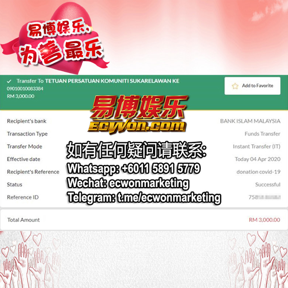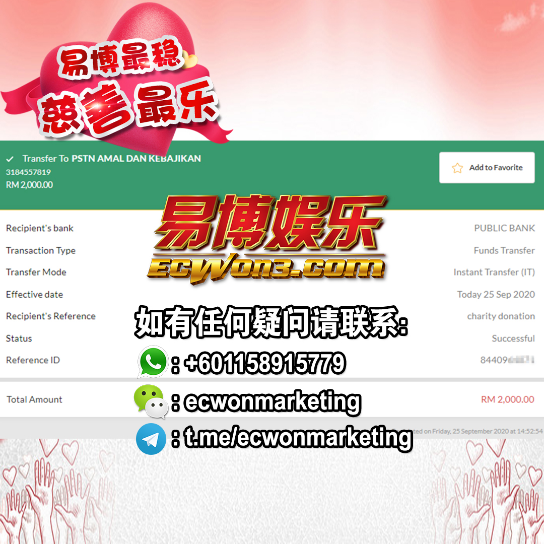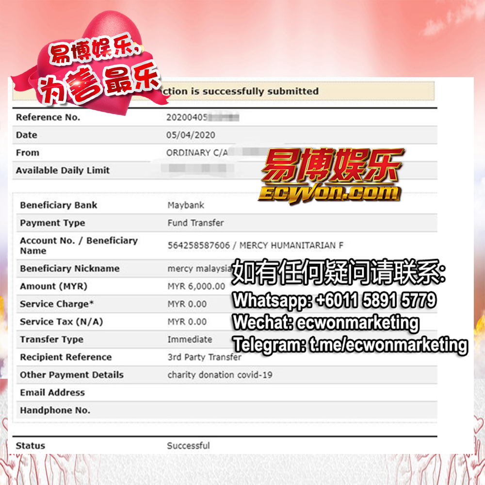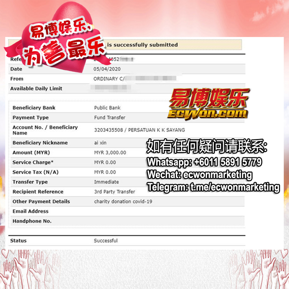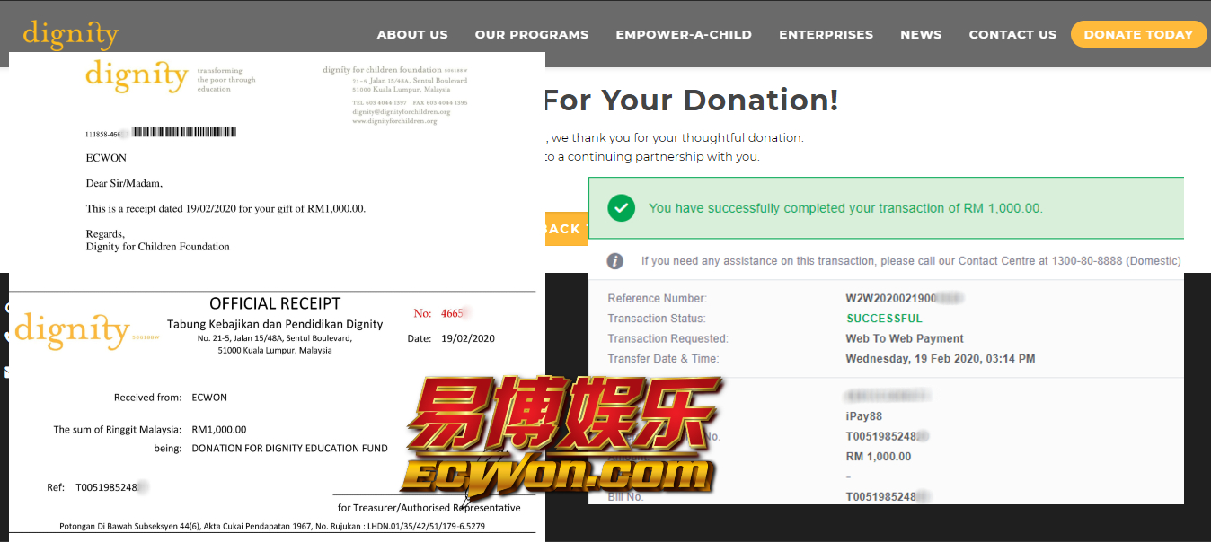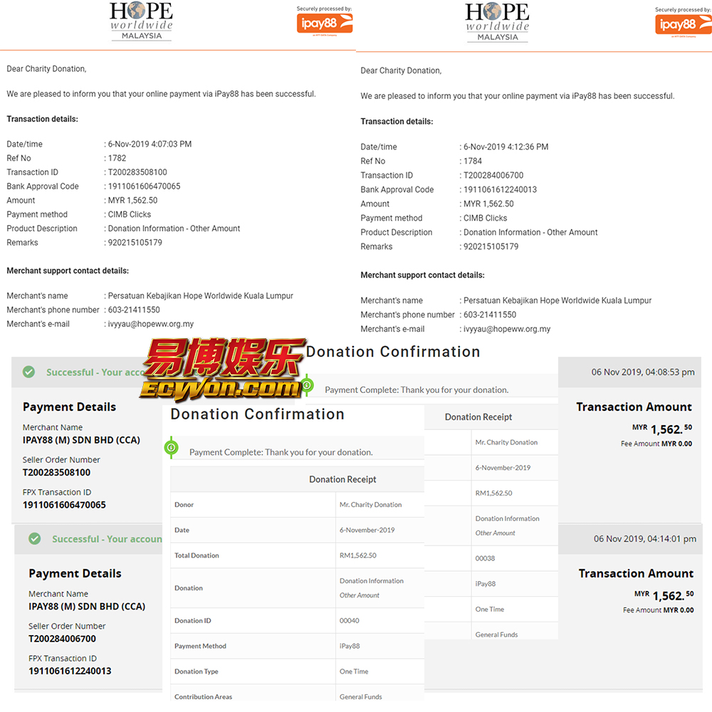 ×DATE UNITS MATTERS(Event/Case) AMOUNT RECEIPT 27/09/2025 One Hope Charity & Welfare September 2025 Donation RM 2,000 more 27/09/2025 One Hope Charity & Welfare September 2025 Donation RM 2,000 more 27/09/2025 UNICEF For Every Child September 2025 Donation RM 2,000 more 27/09/2025 Rayuan Tajaan Anak Yatim Gaza di bawah Projek Yatim KHOM September 2025 Donation RM 2,000 more 27/09/2025 Rayuan Kecemasan Susu Bayi Gaza September 2025 Donation RM 2,000 more 23/01/2024 Auntie Fong Lian (Give Malaysia) January 2024 Donation RM 2,000 more 23/01/2024 Baby Min Thant Chemotherapy Treatments (Give Malaysia) January 2024 Donation RM 2,000 more 23/01/2024 Give Acacia Fighting Chance (Give Malaysia) January 2024 Donation RM 2,000 more 23/01/2024 Haura Cancer Treatment (Give Malaysia) January 2024 Donation RM 2,000 more 23/01/2024 Raysha kidney Treatments (Give Malaysia) January 2024 Donation RM 2,000 more 29/08/2023 Nor Shahidah Heart Surgery August 2023 Donation RM 949.20 more 27/04/2023 Little Girl's Cancer Treatment April 2023 Donation RM 3,343 more 21/02/2023 GIVE Malaysia February 2023 Donation RM 5,000 more 15/12/2022 One Hope Charity & Welfa December 2022 Donation RM 10,000 more 12/07/2022 Lau Mei Jun July 2022 Donation RM 10,000 more 16/04/2022 Pusat Jagaan Kasih Sayang Prasanna April 2022 Donation RM 3,000 more 06/04/2022 Prakash Well Care Centre April 2022 Donation RM 10,000 more 28/03/2022 Yayasan Kebajikan Muslim - Low Xin Yu March 2022 Donation RM 3,000 more 14/02/2022 Puta Baramee Amulet Centre February 2022 Donation RM 2,000 more 31/12/2021 Pertubuhan Kebajikan Mu Zi Kuala Lumpur December Flood Relief RM 50,000 more 27/12/2021 7979 Volunteer Group December Flood Relief RM 6,383.71 more 26/12/2021 Prakash Well Care Centre December Donation RM 2,023.06 more 25/12/2021 Pertubuhan Kebajikan WSC December Flood Relief RM 33,000 more 08/12/2021 Details cannot be made public due to sensitive issues 2021 Qinghan Scholarship RM 10,000 more 31/10/2021 Kiew Lee Yun October Donation RM 2,000 more 14/10/2021 Wong Koy Lean October Donation RM 10,000 more 09/08/2021 Pertubuhan Kebajikan Shi Fang Johor Bahru Johor Urgent Donation for HFNC breathing tube RM 10,000 more 04/08/2021 Rumah Charis ECWON 6TH Anniversary Donation RM 2,000 more 04/08/2021 Be Home For Special Care ECWON 6TH Anniversary Donation RM 2,000 more 04/08/2021 Pusat Jagaan Sri Mesra-Mesra Home Ampang ECWON 6TH Anniversary Donation RM 2,000 more 04/08/2021 En Yuan Old Folk Home ECWON 6TH Anniversary Donation RM 2,000 more 04/08/2021 Association Yee Ran Jing Sheh Handicapped Children's Home ECWON 6TH Anniversary Donation RM 2,000 more 04/08/2021 Penang Handicapped Welfare Association ECWON 6TH Anniversary Donation RM 2,000 more 04/08/2021 Persatuan Rumah Caring Kajang Selangor ECWON 6TH Anniversary Donation RM 2,000 more 04/08/2021 Pertubuhan Kebajikan Orang Tua Cacat Dan Kurang Upaya Taman Connaught ECWON 6TH Anniversary Donation RM 2,000 more 04/08/2021 Pertubuhan Kebajikan Orang Tua Wen Xin ECWON 6TH Anniversary Donation RM 2,000 more 04/08/2021 Pusat Penjagaan Warga Emas Chan ECWON 6TH Anniversary Donation RM 2,000 more 04/08/2021 St. Nicholas' Home ECWON 6TH Anniversary Donation RM 2,000 more 04/08/2021 Pertubuhan Amal Uncle Kentang Malaysia ECWON 6TH Anniversary Donation RM 2,000 more 20/07/2021 White Flag Campaign ECWON 6TH Anniversary Donation RM 6,210.90 more 19/07/2021 Persatuan Kebajikan Amal Da Ai Malaysia Jul'21 Donation RM 1,000 more 01/06/2021 Klang Valley Elderly and Disability Center Klang Valley Elderly and Disability Donation RM 10,000 more 09/02/2021 Pertubuhan Amal Uncle Kentang Malaysia February Donation RM 10,000 more 09/02/2021 Persatuan Kebajikan Prihatin Kuan Yin February Donation RM 3,000 more 09/02/2021 Pkbb Shuang Fu JB February Donation RM 3,000 more 09/02/2021 Pertubuhan Kebajikan Amal Charis Mantin February Donation RM 3,000 more 09/02/2021 Persatuan Kebajikan Warga Emas Ci Shan February Donation RM 3,000 more 09/02/2021 Pertubuhan Pengurusan Rumah Anak-anak Yatim Dan Miskin "Anning" February Donation RM 3,000 more 09/02/2021 Kuching Life Care Society February Donation RM 2,000 more 06/02/2021 NGOhub February Donation RM 2,000 more 06/02/2021 Tenaganita Society February Donation RM 2,000 more 06/02/2021 Yayasan Setia Negara February Donation RM 2,000 more 06/02/2021 Hopis Malaysia February Donation RM 2,000 more 06/02/2021 Pusat Perubatan Universiti Malaya February Donation RM 2,000 more 06/02/2021 Respons Malaysia February Donation RM 2,000 more 06/02/2021 The Lost Food Project February Donation RM 2,000 more 06/02/2021 Unicef February Donation RM 2,000 more 06/02/2021 Protect and Save The Children February Donation RM 3,000 more 06/02/2021 MERCY Malaysia February Donation RM 3,000 more 05/02/2021 Persatuan Kebajikan Ler See February Donation RM 2,000 more 05/02/2021 Persatuan Kebajikan Kanak-kanak OKU Bayan Lebas Pulau Pinang February Donation RM 2,000 more 05/02/2021 Persatuan Insan Istimewa Cheras Selangor February Donation RM 2,000 more 05/02/2021 Persatuan Kebajikan Kanak-kanak Terencat Akal Malaysia February Donation RM 2,000 more 05/02/2021 Pertubuhan Kebajikan Shi Fang Johor February Donation RM 2,000 more 05/02/2021 Pusat Jagaan Kasih Sayang Prasanna February Donation RM 2,000 more 05/02/2021 Pusat Jagaan Kasih Sayang Angel February Donation RM 2,000 more 05/02/2021 Rumah Orang-orang Tua Seri Setia February Donation RM 2,000 more 05/02/2021 Pusat Kebajikan Care Haven Bhd February Donation RM 2,000 more 05/02/2021 Pertubuhan Kebajikan Orang Tua Yi Xing February Donation RM 3,000 more 05/02/2021 Pertubuhan Kebajikan Orang Tua Wen Xin February Donation RM 3,000 more 05/02/2021 Pertubuhan Kebajikan Orang Tua Cacat Dan Kurang Upaya Taman Connaught February Donation RM 3,000 more 05/02/2021 Pusat Penjagaan Warga Emas Chan February Donation RM 3,000 more 05/02/2021 Shine Home February Donation RM 3,000 more 05/02/2021 Pertubuhan Kebajikan Insan Istimewa Kuala Lumpur February Donation RM 3,000 more 05/02/