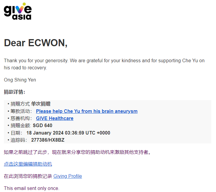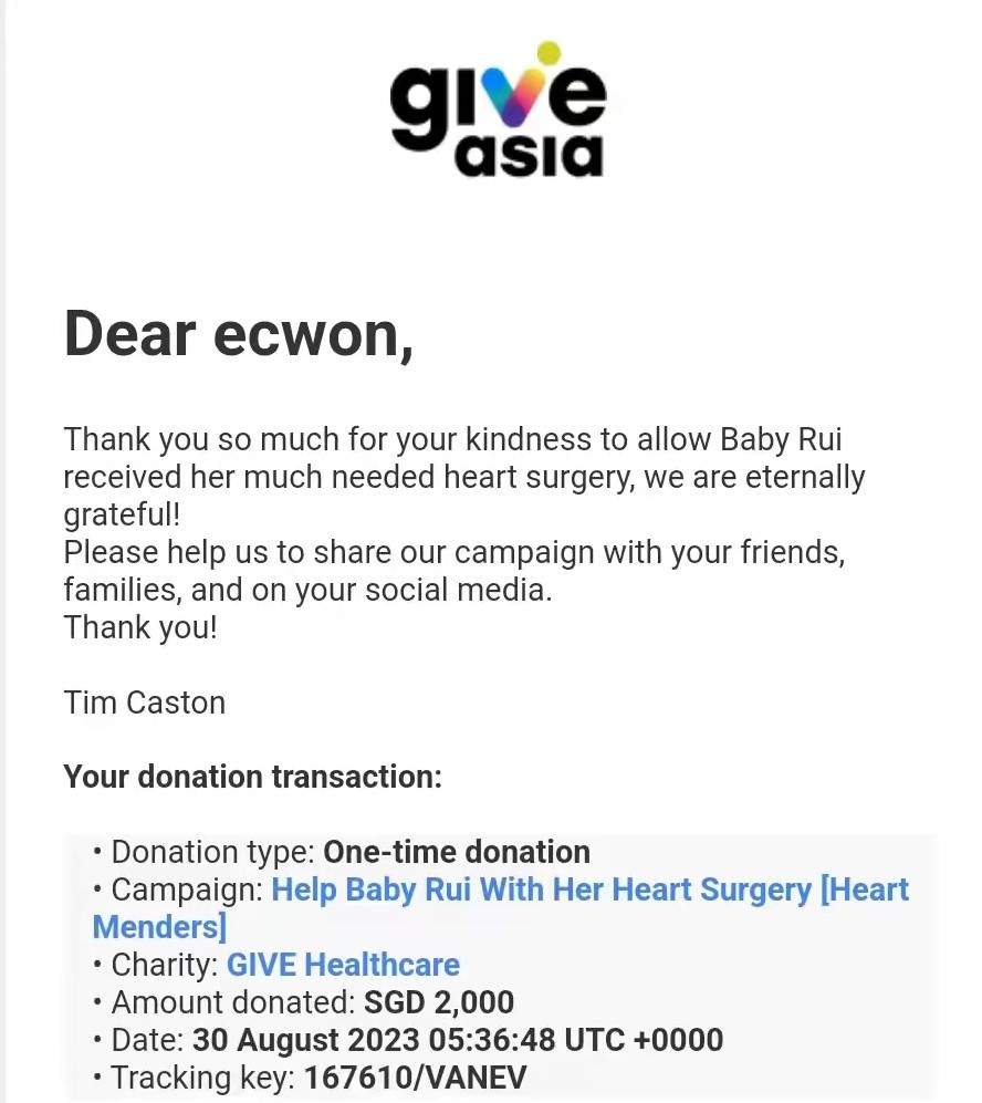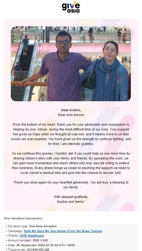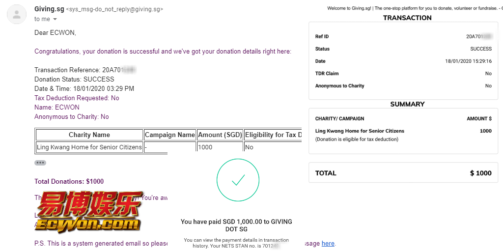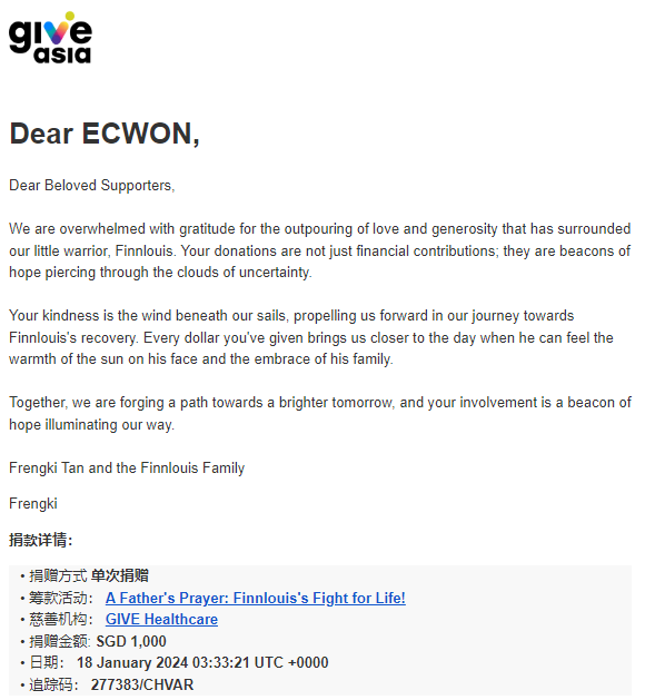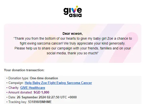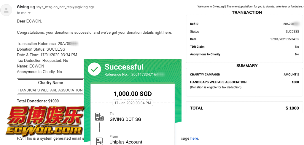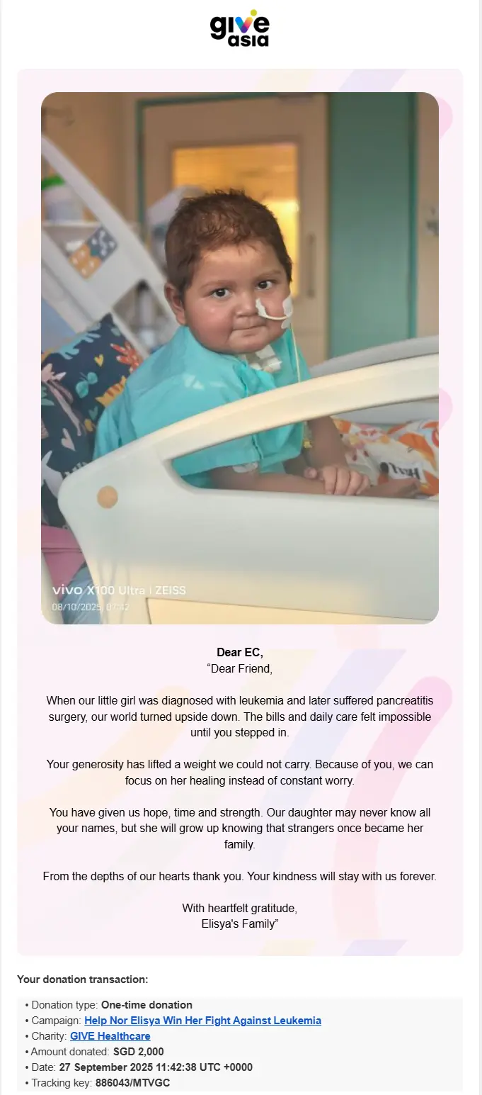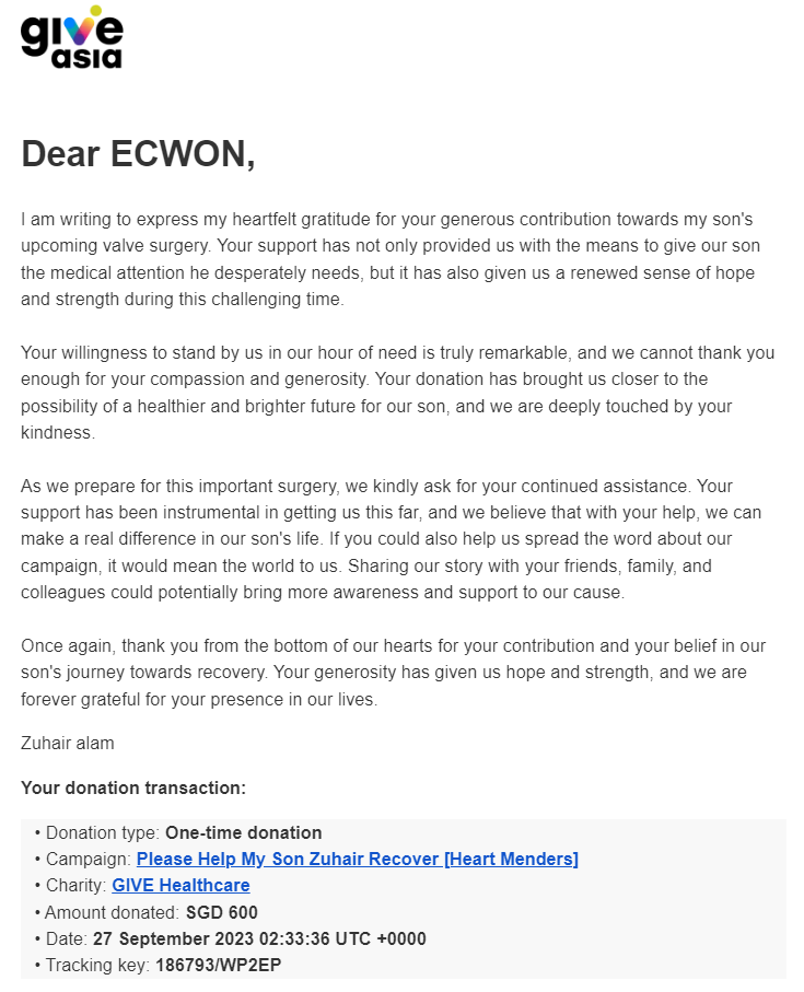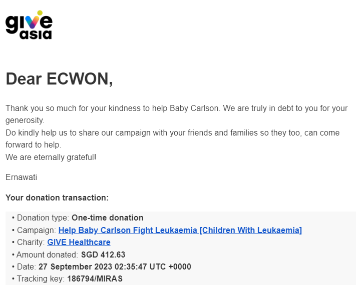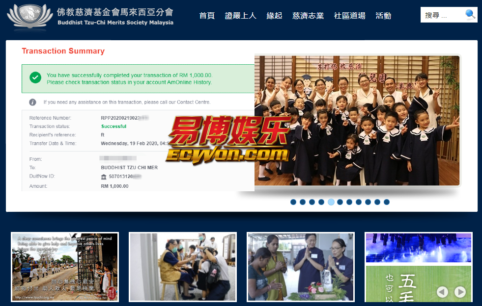 ×DATE UNITS MATTERS(Event/Case) AMOUNT RECEIPT 27/09/2025 One Hope Charity & Welfare September 2025 Donation RM 2,000 more 27/09/2025 One Hope Charity & Welfare September 2025 Donation RM 2,000 more 27/09/2025 UNICEF For Every Child September 2025 Donation RM 2,000 more 27/09/2025 Rayuan Tajaan Anak Yatim Gaza di bawah Projek Yatim KHOM September 2025 Donation RM 2,000 more 27/09/2025 Rayuan Kecemasan Susu Bayi Gaza September 2025 Donation RM 2,000 more 23/01/2024 Auntie Fong Lian (Give Malaysia) January 2024 Donation RM 2,000 more 23/01/2024 Baby Min Thant Chemotherapy Treatments (Give Malaysia) January 2024 Donation RM 2,000 more 23/01/2024 Give Acacia Fighting Chance (Give Malaysia) January 2024 Donation RM 2,000 more 23/01/2024 Haura Cancer Treatment (Give Malaysia) January 2024 Donation RM 2,000 more 23/01/2024 Raysha kidney Treatments (Give Malaysia) January 2024 Donation RM 2,000 more 29/08/2023 Nor Shahidah Heart Surgery August 2023 Donation RM 949.20 more 27/04/2023 Little Girl's Cancer Treatment April 2023 Donation RM 3,343 more 21/02/2023 GIVE Malaysia February 2023 Donation RM 5,000 more 15/12/2022 One Hope Charity & Welfa December 2022 Donation RM 10,000 more 12/07/2022 Lau Mei Jun July 2022 Donation RM 10,000 more 16/04/2022 Pusat Jagaan Kasih Sayang Prasanna April 2022 Donation RM 3,000 more 06/04/2022 Prakash Well Care Centre April 2022 Donation RM 10,000 more 28/03/2022 Yayasan Kebajikan Muslim - Low Xin Yu March 2022 Donation RM 3,000 more 14/02/2022 Puta Baramee Amulet Centre February 2022 Donation RM 2,000 more 31/12/2021 Pertubuhan Kebajikan Mu Zi Kuala Lumpur December Flood Relief RM 50,000 more 27/12/2021 7979 Volunteer Group December Flood Relief RM 6,383.71 more 26/12/2021 Prakash Well Care Centre December Donation RM 2,023.06 more 25/12/2021 Pertubuhan Kebajikan WSC December Flood Relief RM 33,000 more 08/12/2021 Details cannot be made public due to sensitive issues 2021 Qinghan Scholarship RM 10,000 more 31/10/2021 Kiew Lee Yun October Donation RM 2,000 more 14/10/2021 Wong Koy Lean October Donation RM 10,000 more 09/08/2021 Pertubuhan Kebajikan Shi Fang Johor Bahru Johor Urgent Donation for HFNC breathing tube RM 10,000 more 04/08/2021 Rumah Charis ECWON 6TH Anniversary Donation RM 2,000 more 04/08/2021 Be Home For Special Care ECWON 6TH Anniversary Donation RM 2,000 more 04/08/2021 Pusat Jagaan Sri Mesra-Mesra Home Ampang ECWON 6TH Anniversary Donation RM 2,000 more 04/08/2021 En Yuan Old Folk Home ECWON 6TH Anniversary Donation RM 2,000 more 04/08/2021 Association Yee Ran Jing Sheh Handicapped Children's Home ECWON 6TH Anniversary Donation RM 2,000 more 04/08/2021 Penang Handicapped Welfare Association ECWON 6TH Anniversary Donation RM 2,000 more 04/08/2021 Persatuan Rumah Caring Kajang Selangor ECWON 6TH Anniversary Donation RM 2,000 more 04/08/2021 Pertubuhan Kebajikan Orang Tua Cacat Dan Kurang Upaya Taman Connaught ECWON 6TH Anniversary Donation RM 2,000 more 04/08/2021 Pertubuhan Kebajikan Orang Tua Wen Xin ECWON 6TH Anniversary Donation RM 2,000 more 04/08/2021 Pusat Penjagaan Warga Emas Chan ECWON 6TH Anniversary Donation RM 2,000 more 04/08/2021 St. Nicholas' Home ECWON 6TH Anniversary Donation RM 2,000 more 04/08/2021 Pertubuhan Amal Uncle Kentang Malaysia ECWON 6TH Anniversary Donation RM 2,000 more 20/07/2021 White Flag Campaign ECWON 6TH Anniversary Donation RM 6,210.90 more 19/07/2021 Persatuan Kebajikan Amal Da Ai Malaysia Jul'21 Donation RM 1,000 more 01/06/2021 Klang Valley Elderly and Disability Center Klang Valley Elderly and Disability Donation RM 10,000 more 09/02/2021 Pertubuhan Amal Uncle Kentang Malaysia February Donation RM 10,000 more 09/02/2021 Persatuan Kebajikan Prihatin Kuan Yin February Donation RM 3,000 more 09/02/2021 Pkbb Shuang Fu JB February Donation RM 3,000 more 09/02/2021 Pertubuhan Kebajikan Amal Charis Mantin February Donation RM 3,000 more 09/02/2021 Persatuan Kebajikan Warga Emas Ci Shan February Donation RM 3,000 more 09/02/2021 Pertubuhan Pengurusan Rumah Anak-anak Yatim Dan Miskin "Anning" February Donation RM 3,000 more 09/02/2021 Kuching Life Care Society February Donation RM 2,000 more 06/02/2021 NGOhub February Donation RM 2,000 more 06/02/2021 Tenaganita Society February Donation RM 2,000 more 06/02/2021 Yayasan Setia Negara February Donation RM 2,000 more 06/02/2021 Hopis Malaysia February Donation RM 2,000 more 06/02/2021 Pusat Perubatan Universiti Malaya February Donation RM 2,000 more 06/02/2021 Respons Malaysia February Donation RM 2,000 more 06/02/2021 The Lost Food Project February Donation RM 2,000 more 06/02/2021 Unicef February Donation RM 2,000 more 06/02/2021 Protect and Save The Children February Donation RM 3,000 more 06/02/2021 MERCY Malaysia February Donation RM 3,000 more 05/02/2021 Persatuan Kebajikan Ler See February Donation RM 2,000 more 05/02/2021 Persatuan Kebajikan Kanak-kanak OKU Bayan Lebas Pulau Pinang February Donation RM 2,000 more 05/02/2021 Persatuan Insan Istimewa Cheras Selangor February Donation RM 2,000 more 05/02/2021 Persatuan Kebajikan Kanak-kanak Terencat Akal Malaysia February Donation RM 2,000 more 05/02/2021 Pertubuhan Kebajikan Shi Fang Johor February Donation RM 2,000 more 05/02/2021 Pusat Jagaan Kasih Sayang Prasanna February Donation RM 2,000 more 05/02/2021 Pusat Jagaan Kasih Sayang Angel February Donation RM 2,000 more 05/02/2021 Rumah Orang-orang Tua Seri Setia February Donation RM 2,000 more 05/02/2021 Pusat Kebajikan Care Haven Bhd February Donation RM 2,000 more 05/02/2021 Pertubuhan Kebajikan Orang Tua Yi Xing February Donation RM 3,000 more 05/02/2021 Pertubuhan Kebajikan Orang Tua Wen Xin February Donation RM 3,000 more 05/02/2021 Pertubuhan Kebajikan Orang Tua Cacat Dan Kurang Upaya Taman Connaught February Donation RM 3,000 more 05/02/2021 Pusat Penjagaan Warga Emas Chan February Donation RM 3,000 more 05/02/2021 Shine Home February Donation RM 3,000 more 05/02/2021 Pertubuhan Kebajikan Insan Istimewa Kuala Lumpur February Donation RM 3,000 more 05/02/