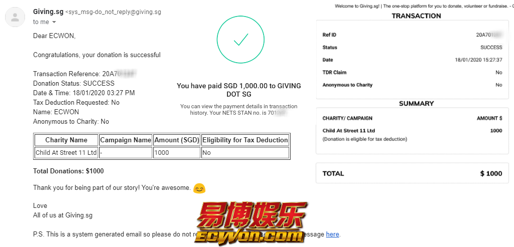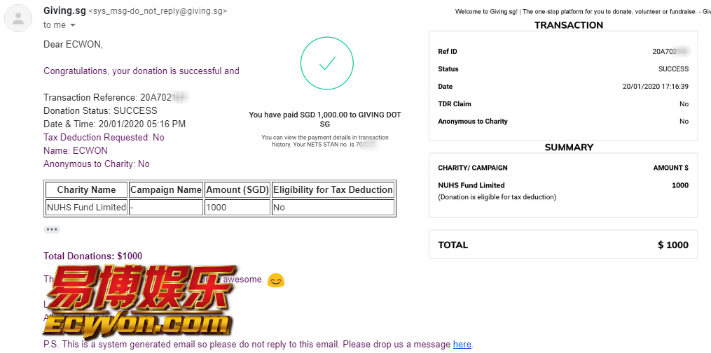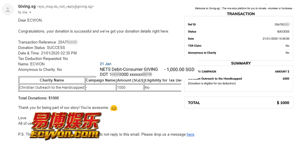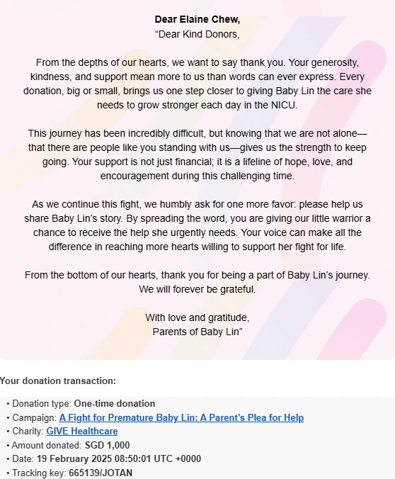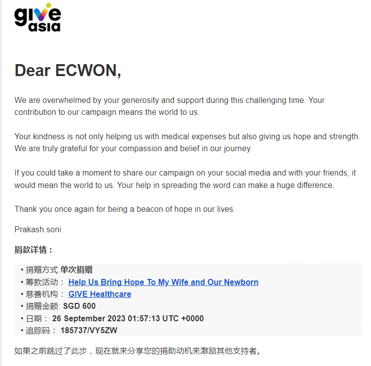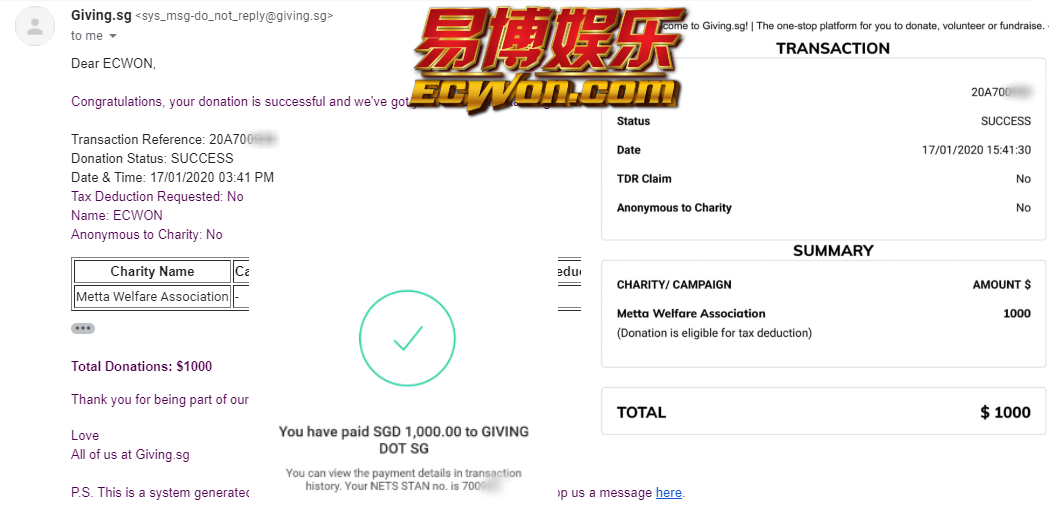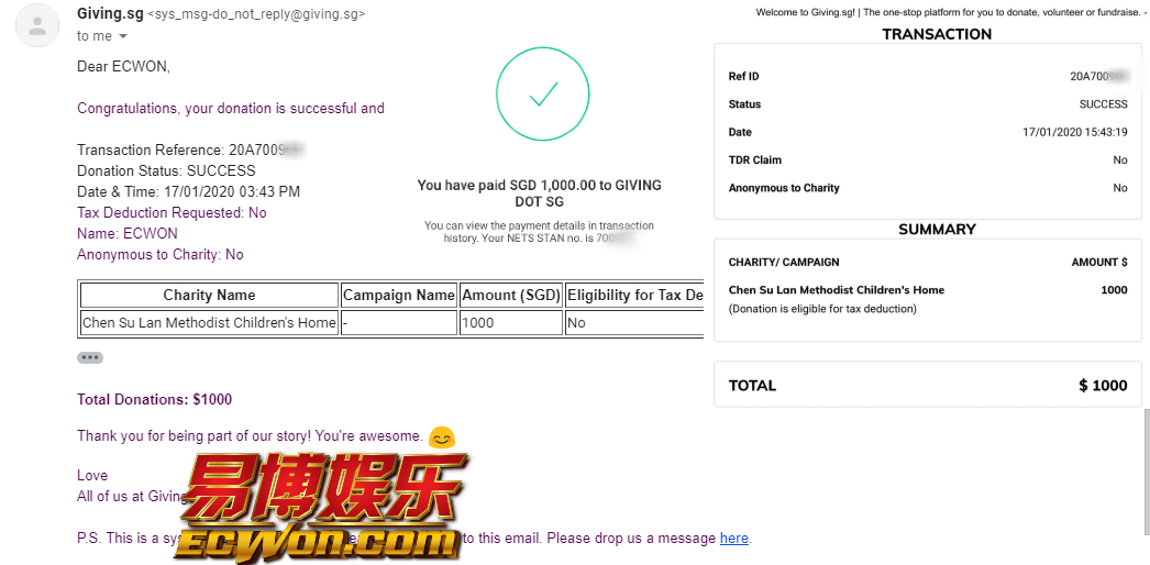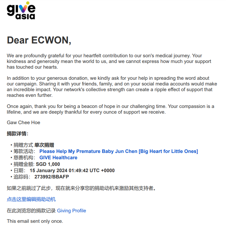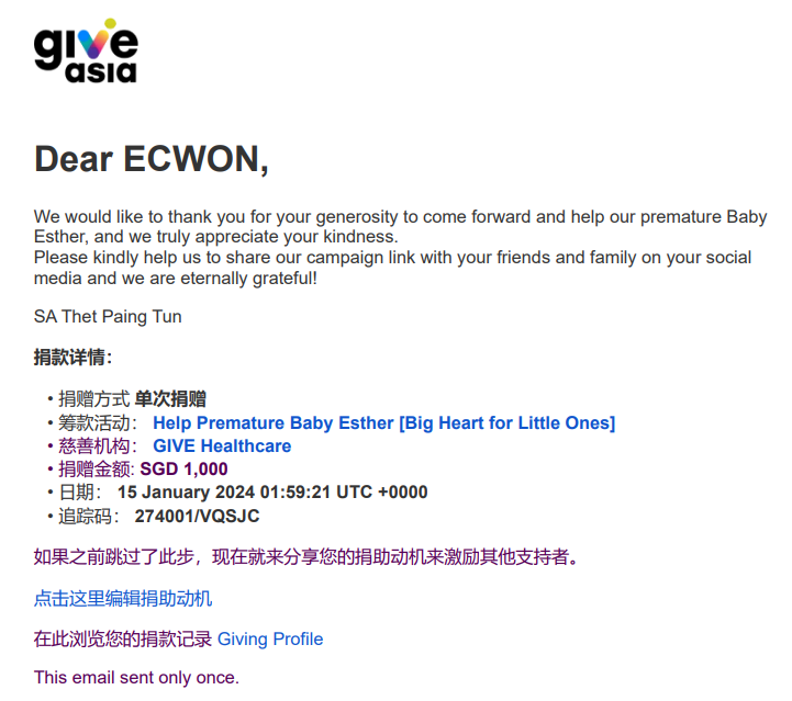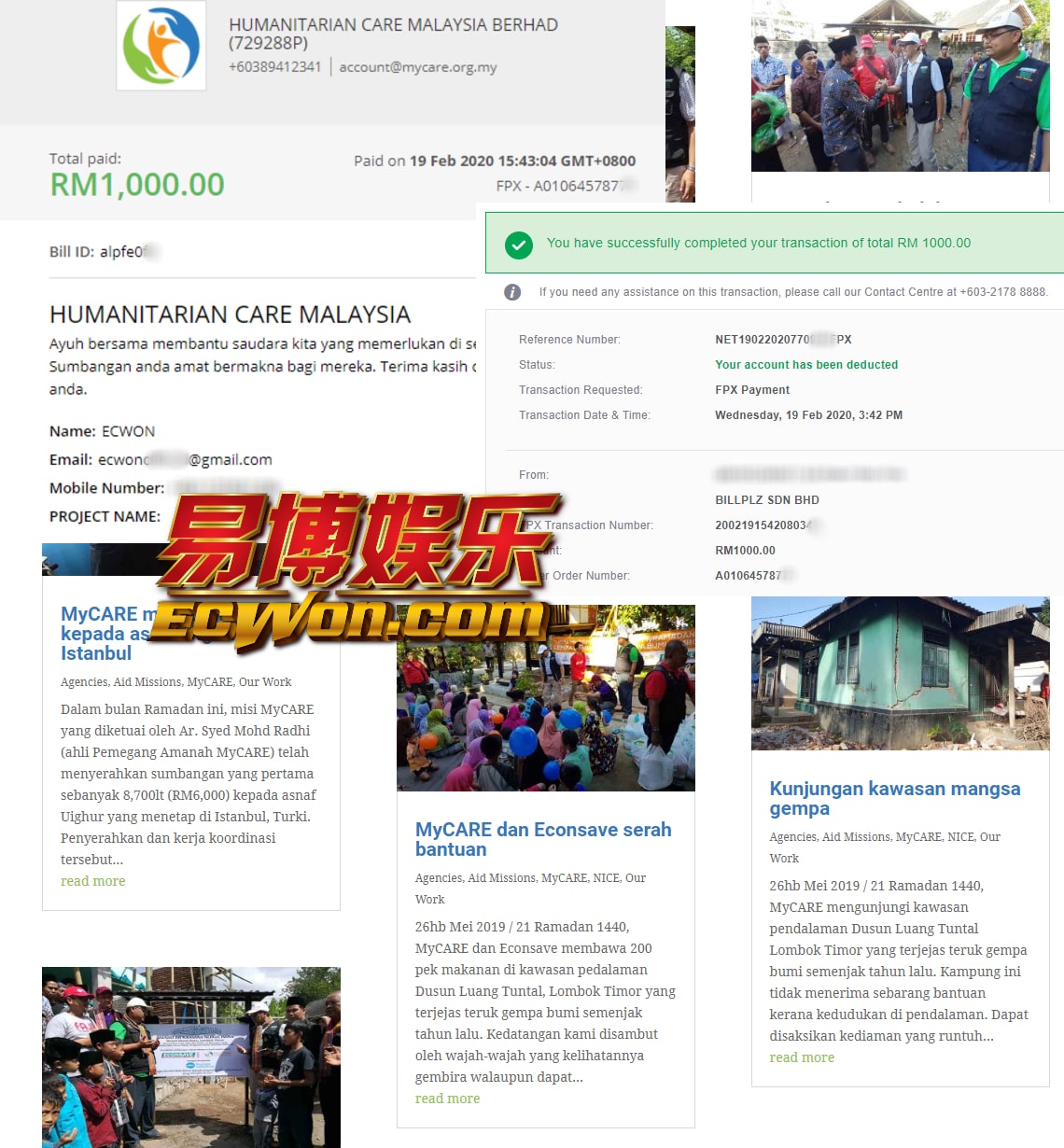 ×DATE UNITS MATTERS(Event/Case) AMOUNT RECEIPT 27/09/2025 One Hope Charity & Welfare September 2025 Donation RM 2,000 more 27/09/2025 One Hope Charity & Welfare September 2025 Donation RM 2,000 more 27/09/2025 UNICEF For Every Child September 2025 Donation RM 2,000 more 27/09/2025 Rayuan Tajaan Anak Yatim Gaza di bawah Projek Yatim KHOM September 2025 Donation RM 2,000 more 27/09/2025 Rayuan Kecemasan Susu Bayi Gaza September 2025 Donation RM 2,000 more 23/01/2024 Auntie Fong Lian (Give Malaysia) January 2024 Donation RM 2,000 more 23/01/2024 Baby Min Thant Chemotherapy Treatments (Give Malaysia) January 2024 Donation RM 2,000 more 23/01/2024 Give Acacia Fighting Chance (Give Malaysia) January 2024 Donation RM 2,000 more 23/01/2024 Haura Cancer Treatment (Give Malaysia) January 2024 Donation RM 2,000 more 23/01/2024 Raysha kidney Treatments (Give Malaysia) January 2024 Donation RM 2,000 more 29/08/2023 Nor Shahidah Heart Surgery August 2023 Donation RM 949.20 more 27/04/2023 Little Girl's Cancer Treatment April 2023 Donation RM 3,343 more 21/02/2023 GIVE Malaysia February 2023 Donation RM 5,000 more 15/12/2022 One Hope Charity & Welfa December 2022 Donation RM 10,000 more 12/07/2022 Lau Mei Jun July 2022 Donation RM 10,000 more 16/04/2022 Pusat Jagaan Kasih Sayang Prasanna April 2022 Donation RM 3,000 more 06/04/2022 Prakash Well Care Centre April 2022 Donation RM 10,000 more 28/03/2022 Yayasan Kebajikan Muslim - Low Xin Yu March 2022 Donation RM 3,000 more 14/02/2022 Puta Baramee Amulet Centre February 2022 Donation RM 2,000 more 31/12/2021 Pertubuhan Kebajikan Mu Zi Kuala Lumpur December Flood Relief RM 50,000 more 27/12/2021 7979 Volunteer Group December Flood Relief RM 6,383.71 more 26/12/2021 Prakash Well Care Centre December Donation RM 2,023.06 more 25/12/2021 Pertubuhan Kebajikan WSC December Flood Relief RM 33,000 more 08/12/2021 Details cannot be made public due to sensitive issues 2021 Qinghan Scholarship RM 10,000 more 31/10/2021 Kiew Lee Yun October Donation RM 2,000 more 14/10/2021 Wong Koy Lean October Donation RM 10,000 more 09/08/2021 Pertubuhan Kebajikan Shi Fang Johor Bahru Johor Urgent Donation for HFNC breathing tube RM 10,000 more 04/08/2021 Rumah Charis ECWON 6TH Anniversary Donation RM 2,000 more 04/08/2021 Be Home For Special Care ECWON 6TH Anniversary Donation RM 2,000 more 04/08/2021 Pusat Jagaan Sri Mesra-Mesra Home Ampang ECWON 6TH Anniversary Donation RM 2,000 more 04/08/2021 En Yuan Old Folk Home ECWON 6TH Anniversary Donation RM 2,000 more 04/08/2021 Association Yee Ran Jing Sheh Handicapped Children's Home ECWON 6TH Anniversary Donation RM 2,000 more 04/08/2021 Penang Handicapped Welfare Association ECWON 6TH Anniversary Donation RM 2,000 more 04/08/2021 Persatuan Rumah Caring Kajang Selangor ECWON 6TH Anniversary Donation RM 2,000 more 04/08/2021 Pertubuhan Kebajikan Orang Tua Cacat Dan Kurang Upaya Taman Connaught ECWON 6TH Anniversary Donation RM 2,000 more 04/08/2021 Pertubuhan Kebajikan Orang Tua Wen Xin ECWON 6TH Anniversary Donation RM 2,000 more 04/08/2021 Pusat Penjagaan Warga Emas Chan ECWON 6TH Anniversary Donation RM 2,000 more 04/08/2021 St. Nicholas' Home ECWON 6TH Anniversary Donation RM 2,000 more 04/08/2021 Pertubuhan Amal Uncle Kentang Malaysia ECWON 6TH Anniversary Donation RM 2,000 more 20/07/2021 White Flag Campaign ECWON 6TH Anniversary Donation RM 6,210.90 more 19/07/2021 Persatuan Kebajikan Amal Da Ai Malaysia Jul'21 Donation RM 1,000 more 01/06/2021 Klang Valley Elderly and Disability Center Klang Valley Elderly and Disability Donation RM 10,000 more 09/02/2021 Pertubuhan Amal Uncle Kentang Malaysia February Donation RM 10,000 more 09/02/2021 Persatuan Kebajikan Prihatin Kuan Yin February Donation RM 3,000 more 09/02/2021 Pkbb Shuang Fu JB February Donation RM 3,000 more 09/02/2021 Pertubuhan Kebajikan Amal Charis Mantin February Donation RM 3,000 more 09/02/2021 Persatuan Kebajikan Warga Emas Ci Shan February Donation RM 3,000 more 09/02/2021 Pertubuhan Pengurusan Rumah Anak-anak Yatim Dan Miskin "Anning" February Donation RM 3,000 more 09/02/2021 Kuching Life Care Society February Donation RM 2,000 more 06/02/2021 NGOhub February Donation RM 2,000 more 06/02/2021 Tenaganita Society February Donation RM 2,000 more 06/02/2021 Yayasan Setia Negara February Donation RM 2,000 more 06/02/2021 Hopis Malaysia February Donation RM 2,000 more 06/02/2021 Pusat Perubatan Universiti Malaya February Donation RM 2,000 more 06/02/2021 Respons Malaysia February Donation RM 2,000 more 06/02/2021 The Lost Food Project February Donation RM 2,000 more 06/02/2021 Unicef February Donation RM 2,000 more 06/02/2021 Protect and Save The Children February Donation RM 3,000 more 06/02/2021 MERCY Malaysia February Donation RM 3,000 more 05/02/2021 Persatuan Kebajikan Ler See February Donation RM 2,000 more 05/02/2021 Persatuan Kebajikan Kanak-kanak OKU Bayan Lebas Pulau Pinang February Donation RM 2,000 more 05/02/2021 Persatuan Insan Istimewa Cheras Selangor February Donation RM 2,000 more 05/02/2021 Persatuan Kebajikan Kanak-kanak Terencat Akal Malaysia February Donation RM 2,000 more 05/02/2021 Pertubuhan Kebajikan Shi Fang Johor February Donation RM 2,000 more 05/02/2021 Pusat Jagaan Kasih Sayang Prasanna February Donation RM 2,000 more 05/02/2021 Pusat Jagaan Kasih Sayang Angel February Donation RM 2,000 more 05/02/2021 Rumah Orang-orang Tua Seri Setia February Donation RM 2,000 more 05/02/2021 Pusat Kebajikan Care Haven Bhd February Donation RM 2,000 more 05/02/2021 Pertubuhan Kebajikan Orang Tua Yi Xing February Donation RM 3,000 more 05/02/2021 Pertubuhan Kebajikan Orang Tua Wen Xin February Donation RM 3,000 more 05/02/2021 Pertubuhan Kebajikan Orang Tua Cacat Dan Kurang Upaya Taman Connaught February Donation RM 3,000 more 05/02/2021 Pusat Penjagaan Warga Emas Chan February Donation RM 3,000 more 05/02/2021 Shine Home February Donation RM 3,000 more 05/02/2021 Pertubuhan Kebajikan Insan Istimewa Kuala Lumpur February Donation RM 3,000 more 05/02/