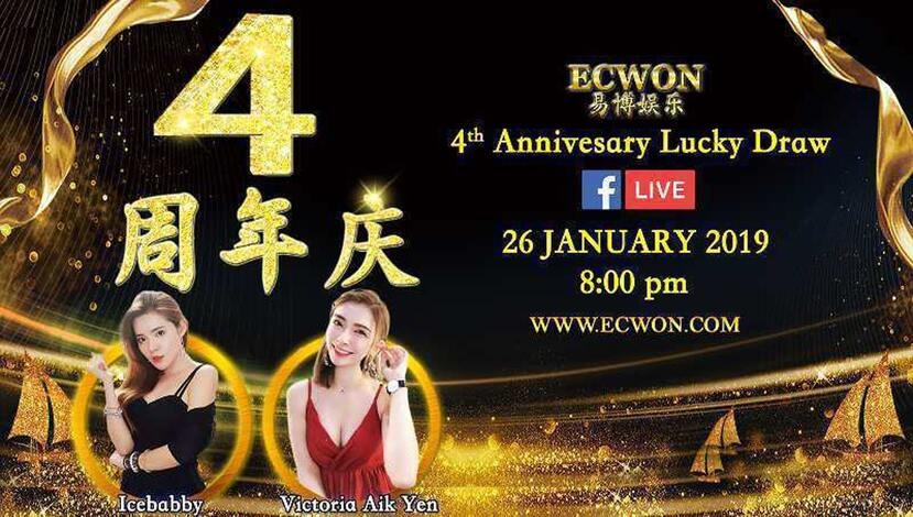 Happy Birthday to ECWON!! Celebrating that ECWON is 4 years old now!!ECWON hosts a FB live lucky draw on January 26, 2019! Prizes worth RM 50,000.00.